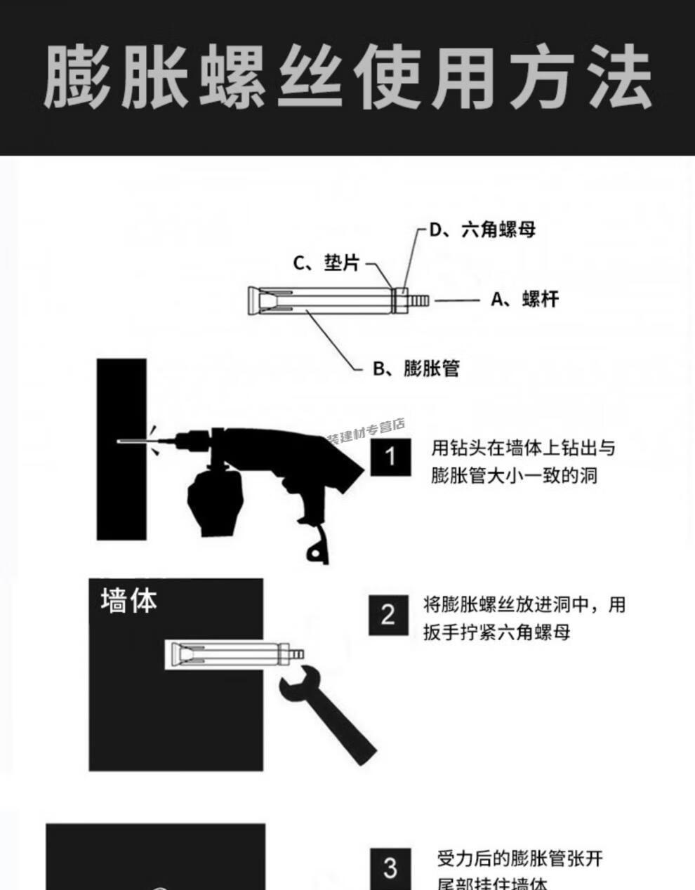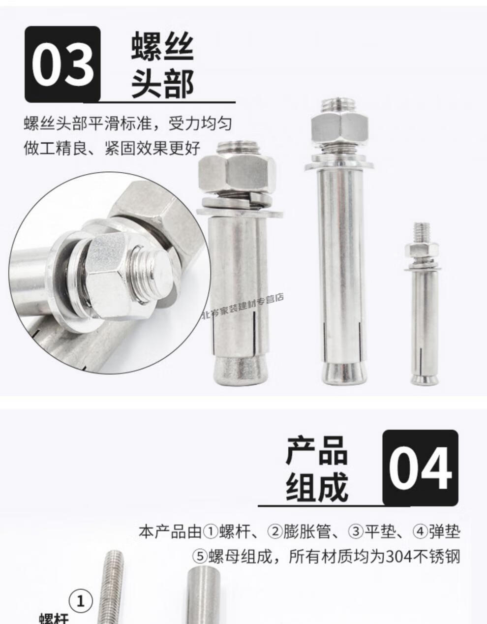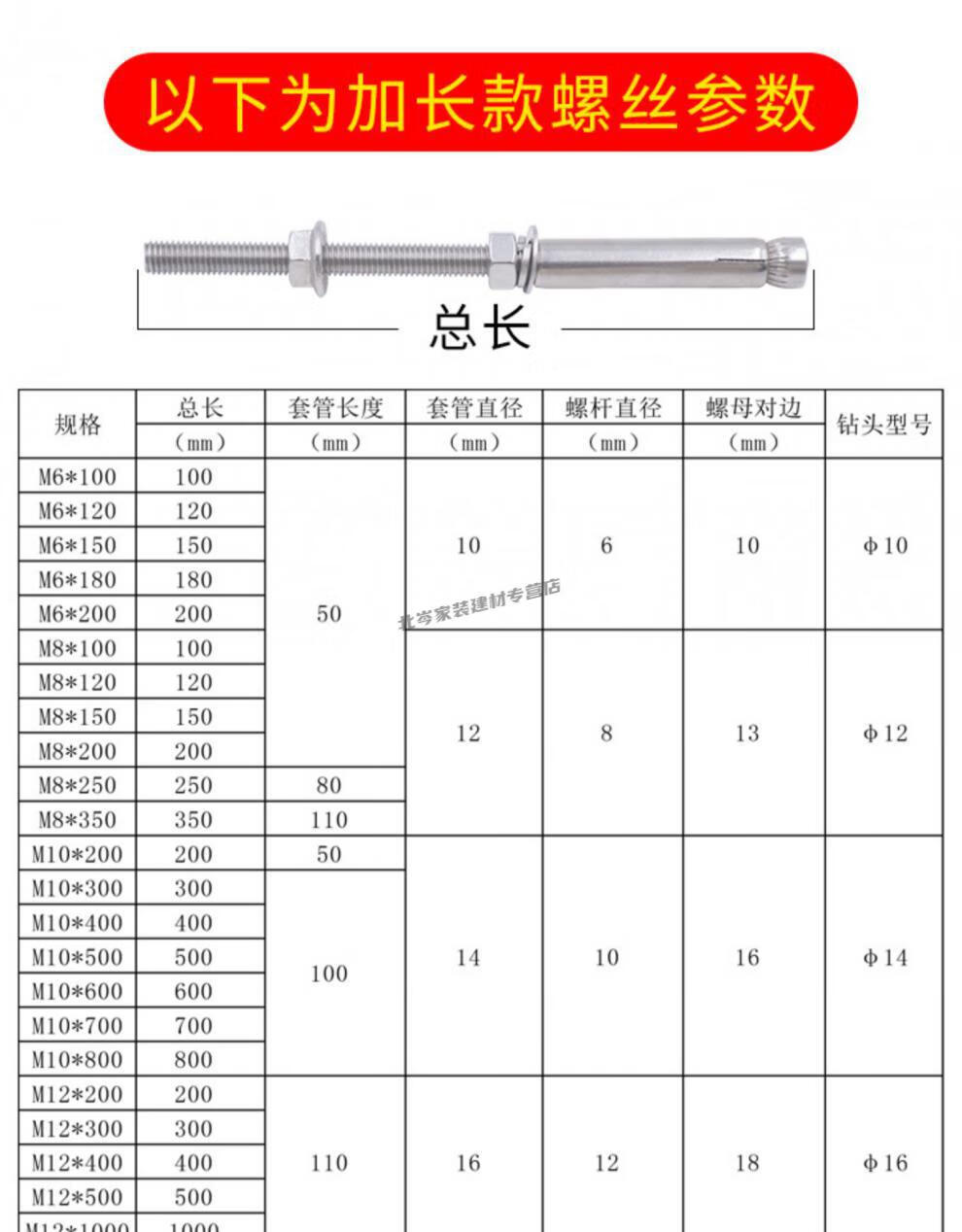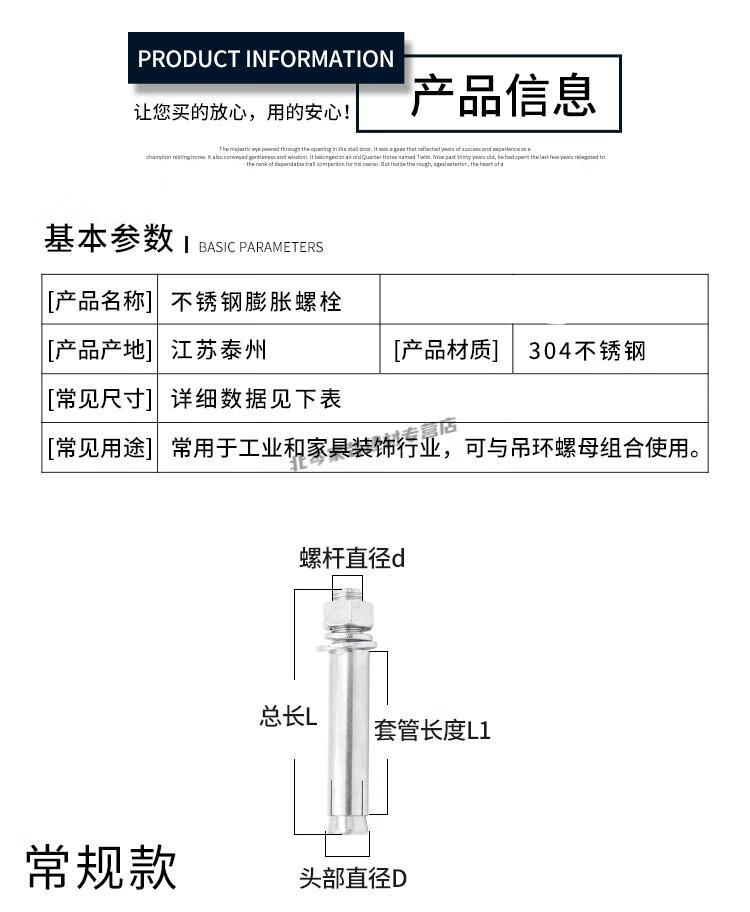 Jingbicheng 304 stainless steel extended expansion screws extra long ceiling expansion bolts clothes drying rack screws extended M10*400 (5 pieces)