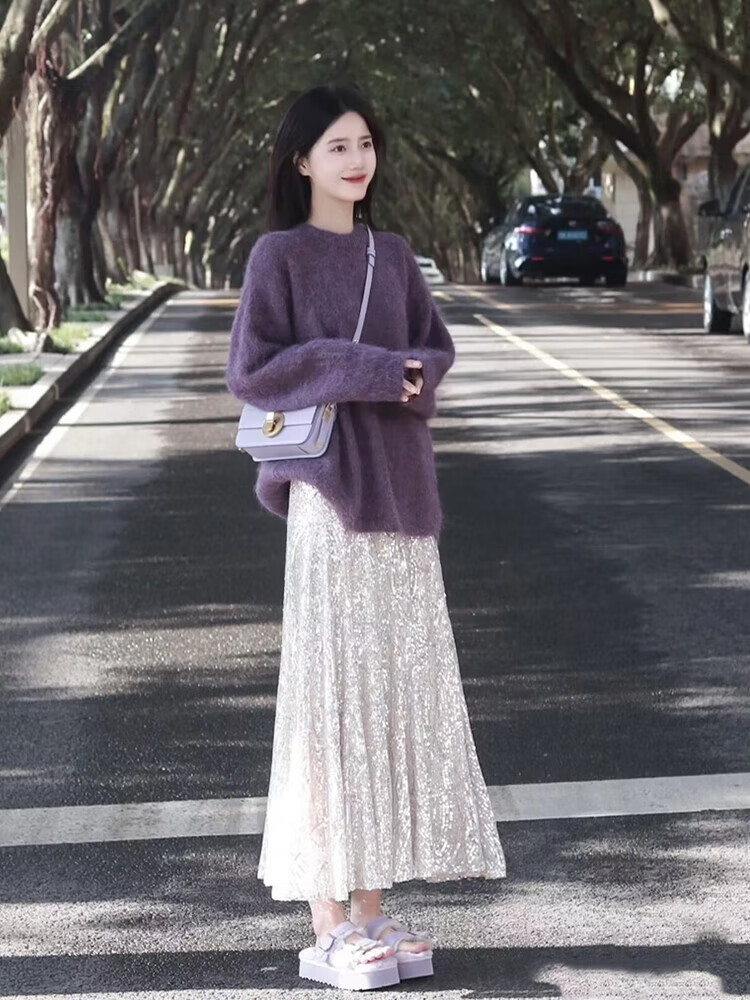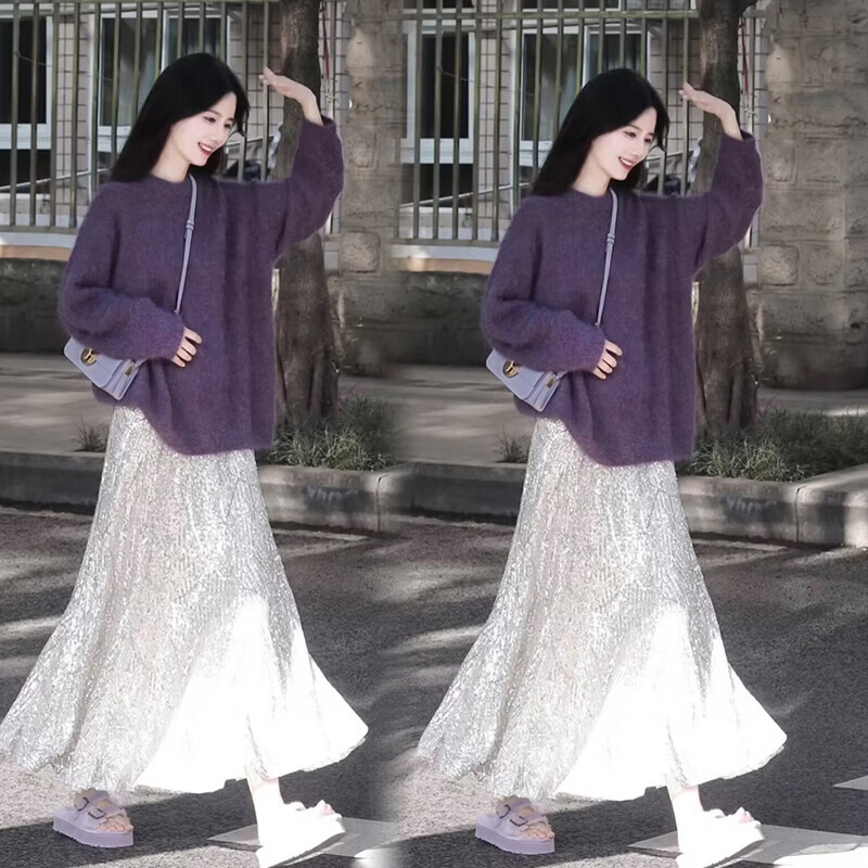 Xiao Yu (XIAOYU) 2025 Spring, Autumn and Winter New Women's Two-Piece One-piece Dress Suit for Small People to Wear Matching Clothes Sweater + Skirt Set One Size 85-135Jin Jin is equal to 0.5 kg
