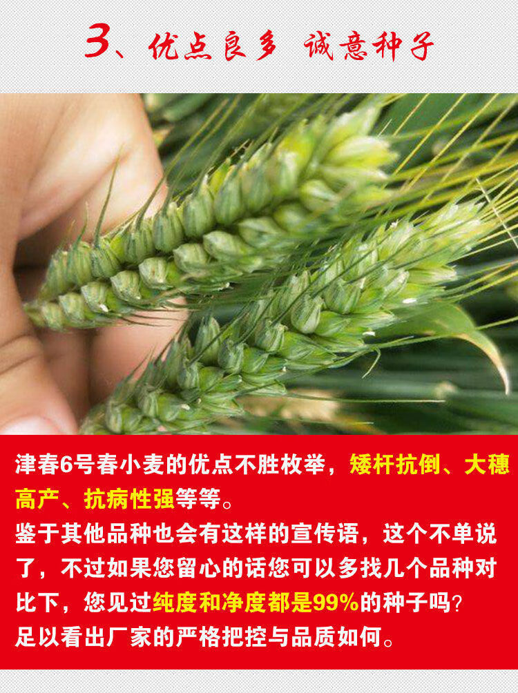 Newly planted Guoshen Jinchun No. 6 spring wheat seed Jimai 22 field high-yielding short stems, large ears, early maturing lodging-resistant wheat z Jimai 22/2 Jin Jin equal to 0.5 kg package/autumn and winter wheat