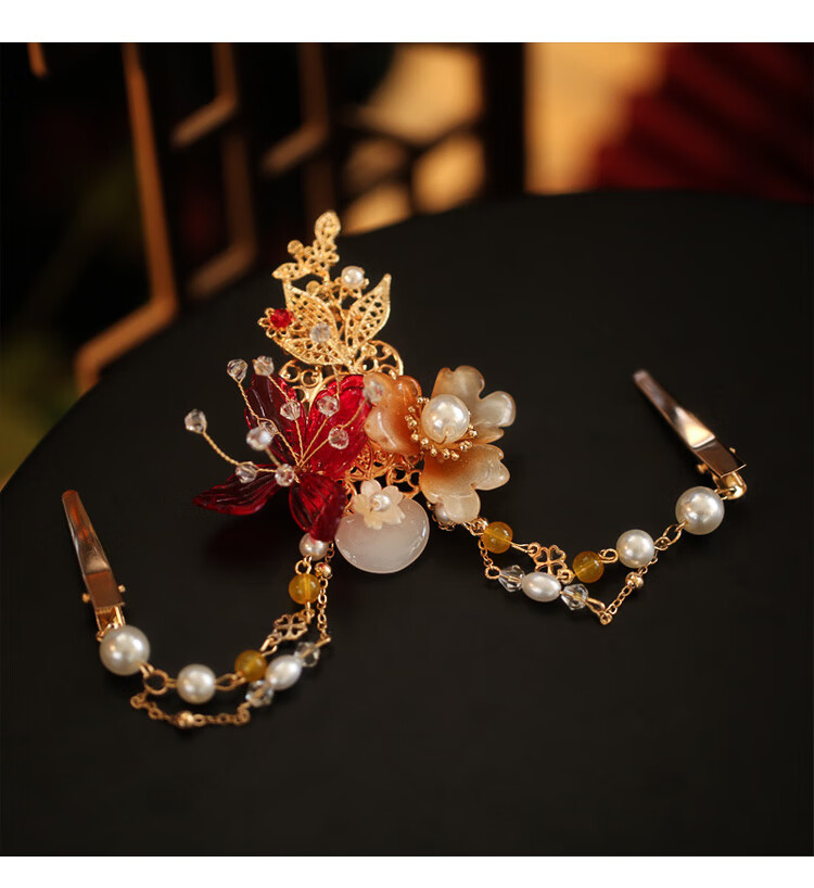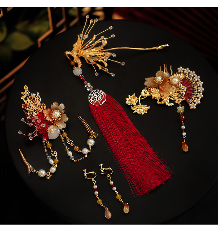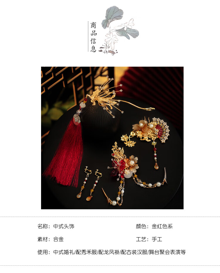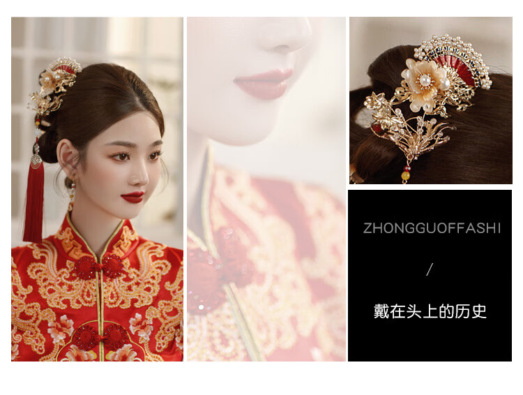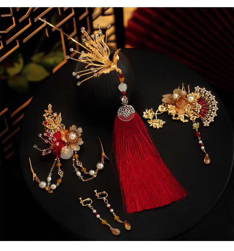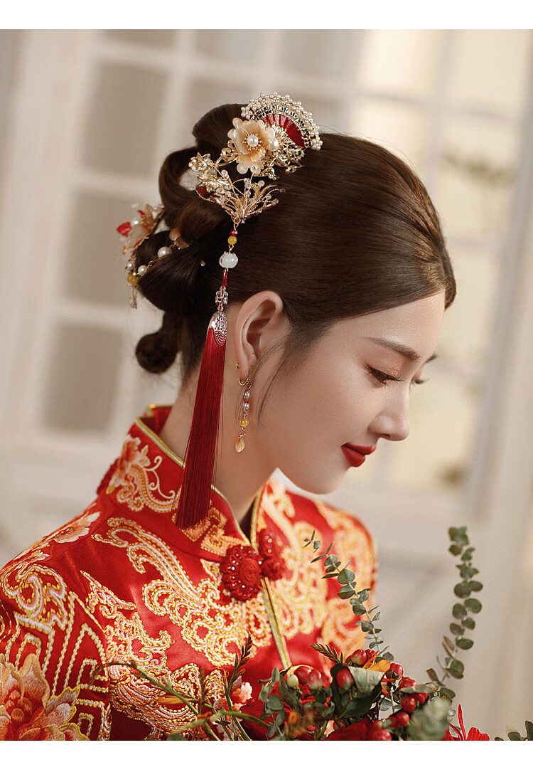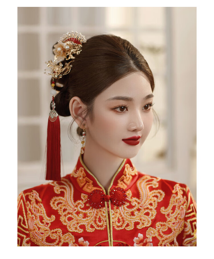 Ancient bride Xiuhe clothing headdress red velvet flower phoenix crown Chinese wedding gift newlywed toast clothing hair accessories wedding accessories Chinese bridal headwear tassel style
