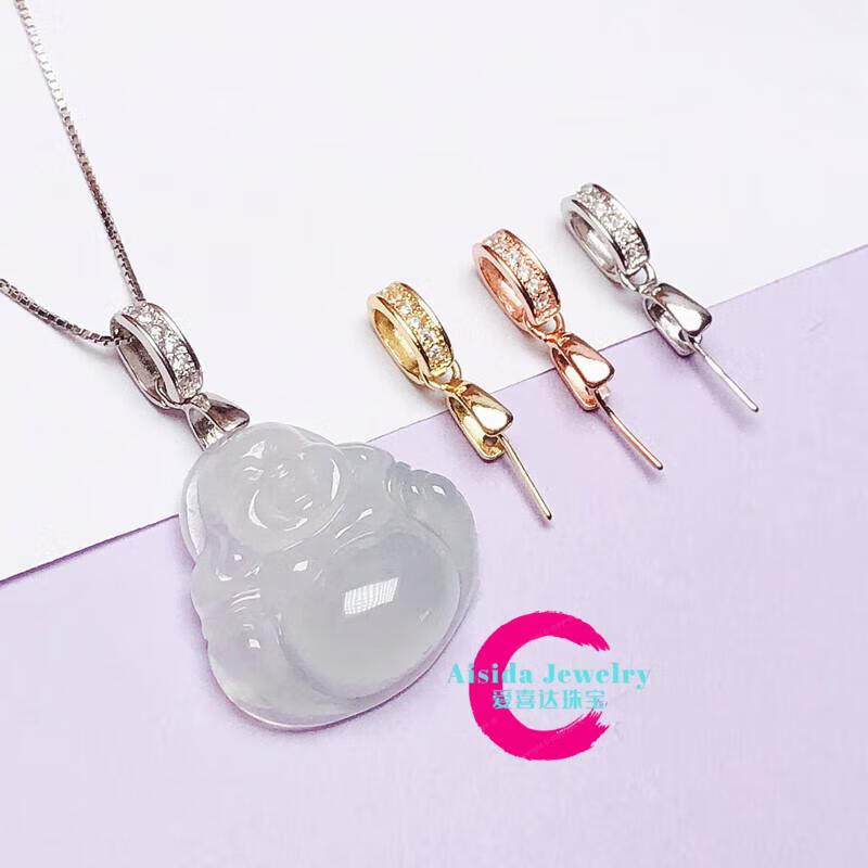 Fat Donglai same style jade pendant buckle head 18K gold small jade pendant buckle necklace buckle accessories style 4 white gold