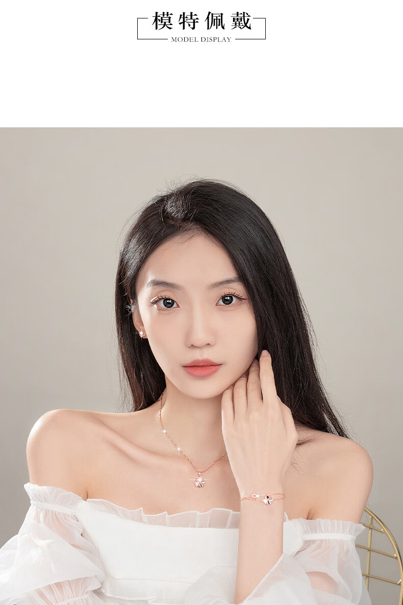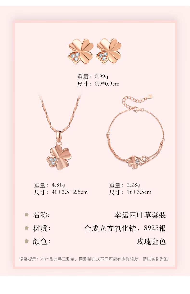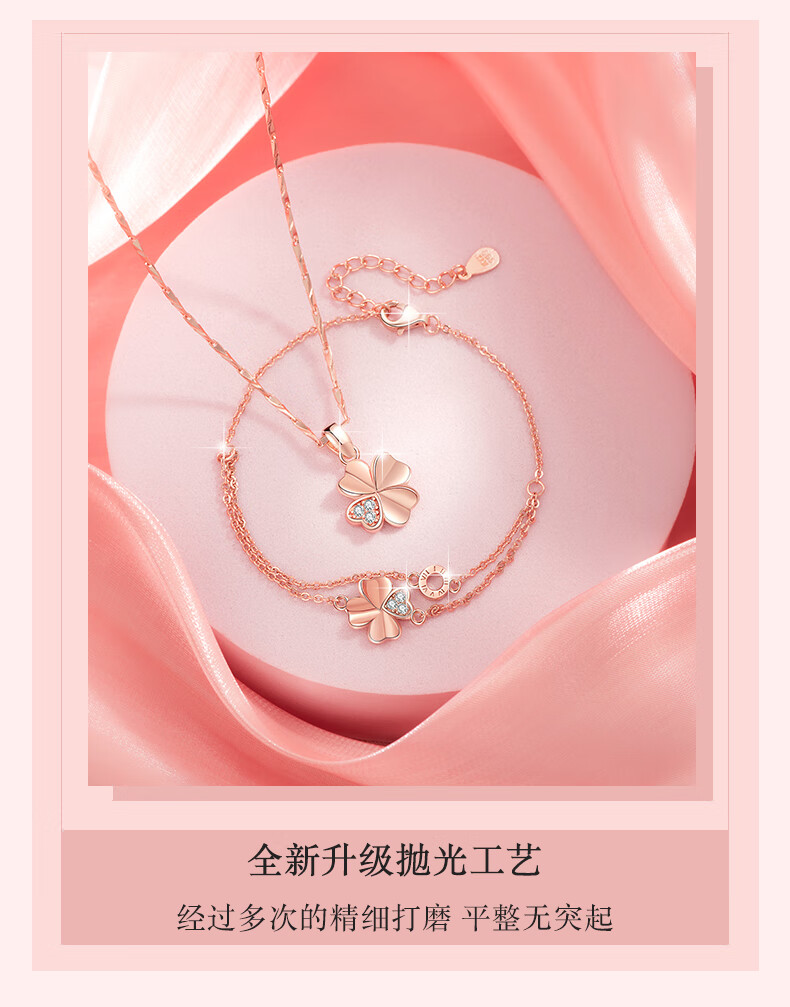 Ji Sifan light luxury four-leaf clover necklace women's fashionable clavicle chain birthday gift for wife Chinese Valentine's Day gift rose gold four-leaf clover three-piece set exquisite gift box packaging