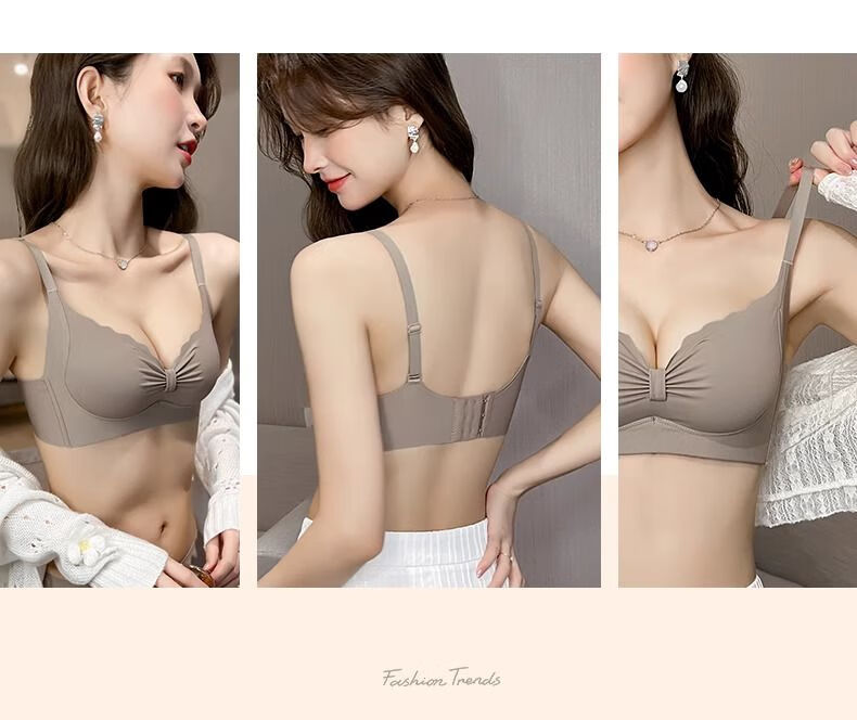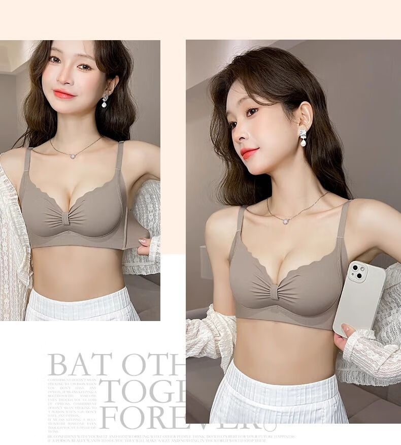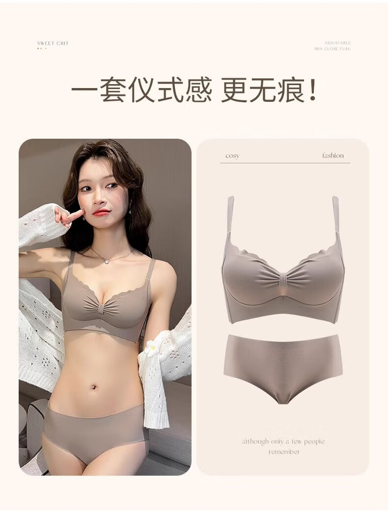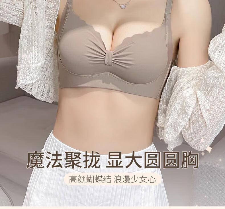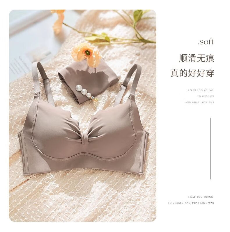 Modal ice silk seamless bra for women with small breasts, push-up support to prevent sagging, sexy and beautiful back, large tube bra set, brown, single piece 80A 36B