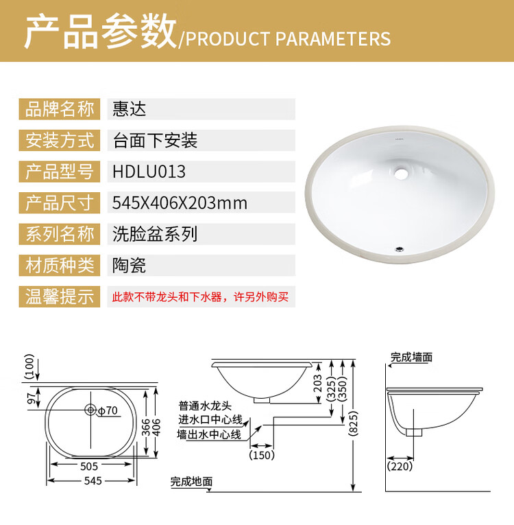 Huida Bathroom Oval undercounter basin ceramic washbasin large size embedded washbasin HDLU013 LU013