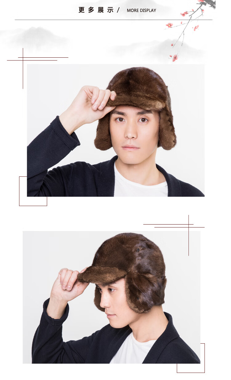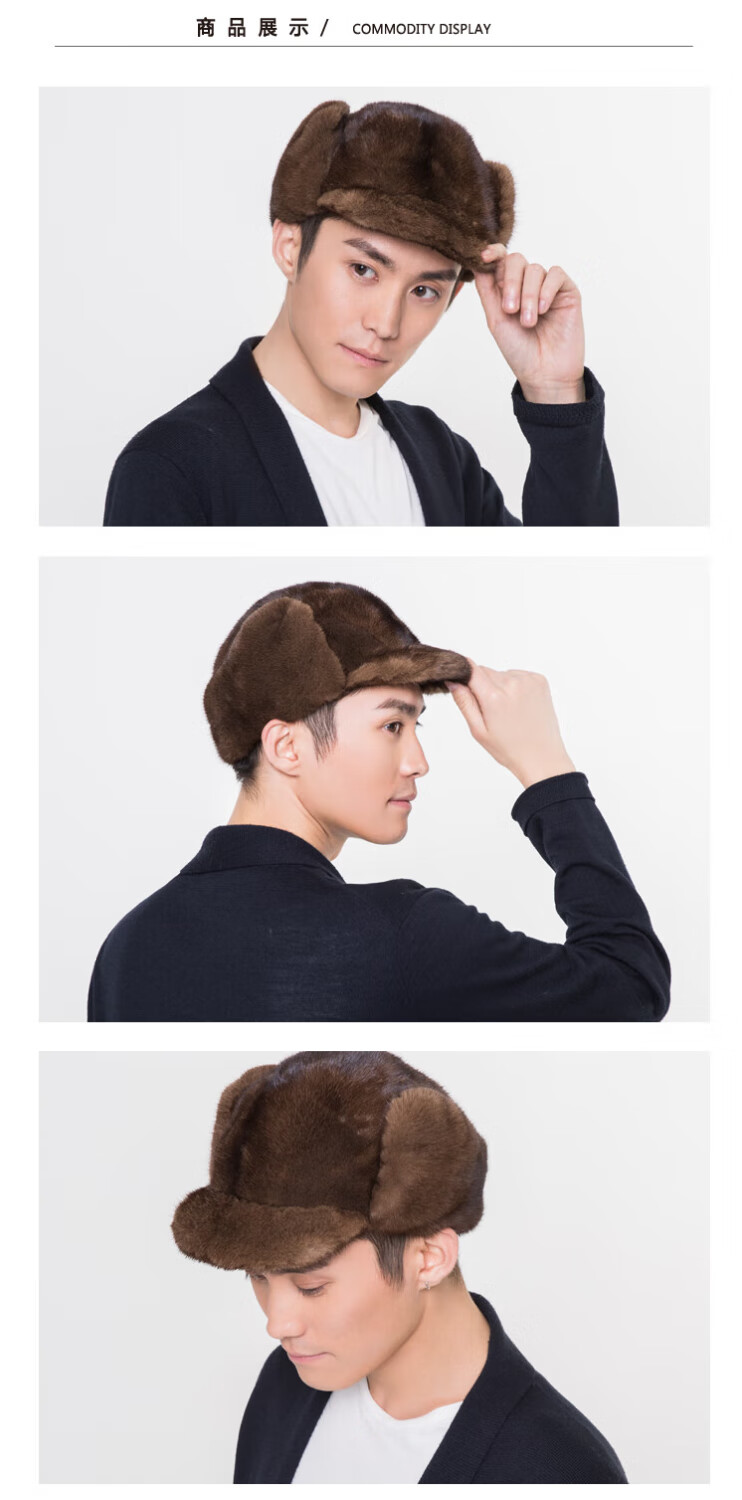 Ma Juyuan, a time-honored Chinese brand, mink hair fashionable cold-proof and warm casual hat for middle-aged and elderly people, horse hat gift jazz hat, A black mink full P horse hat brown 56cm