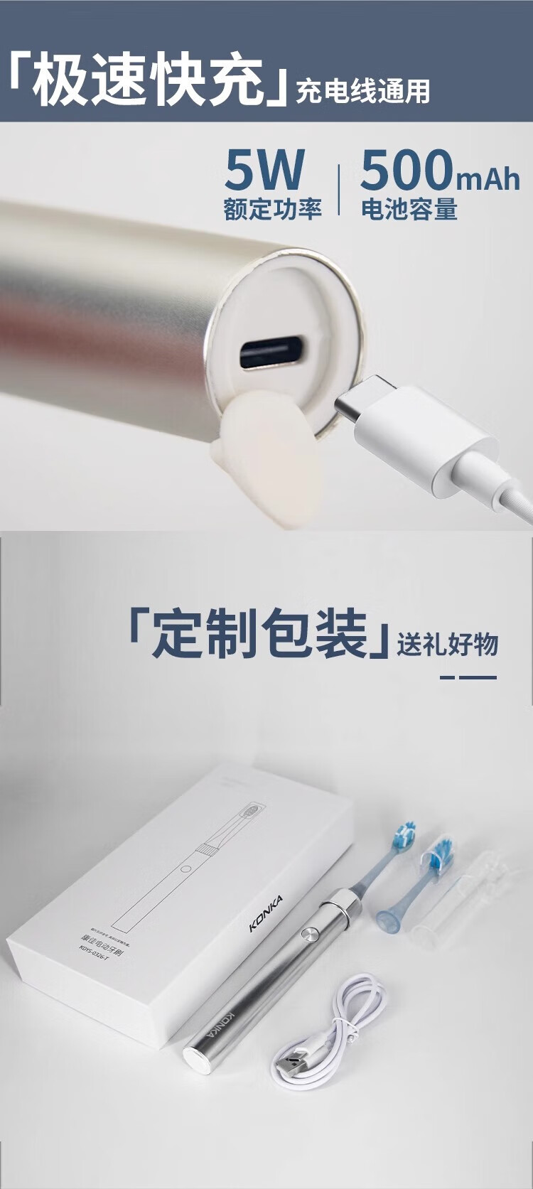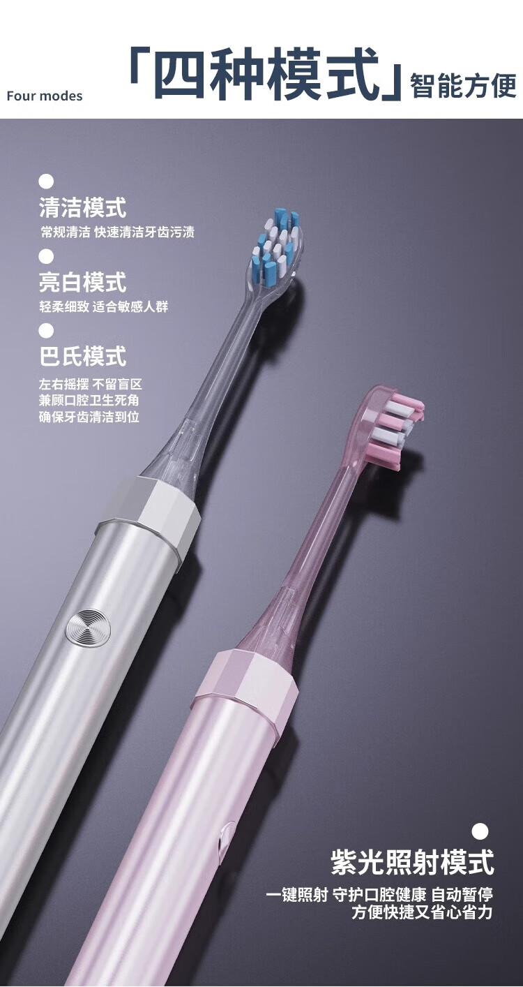 Kangjiayin small star diamond electric toothbrush for boys and girls sonic magnetic levitation household fully automatic sterilization waterproof blue light silver white + two brush heads