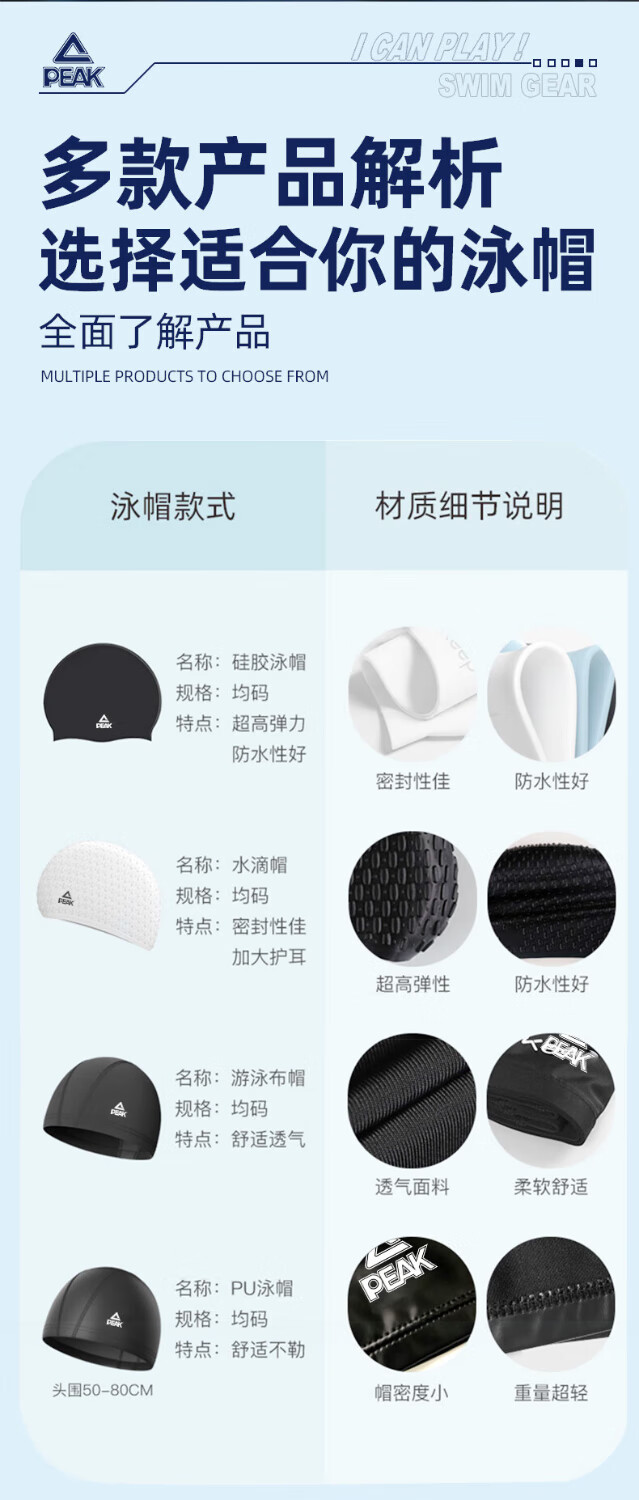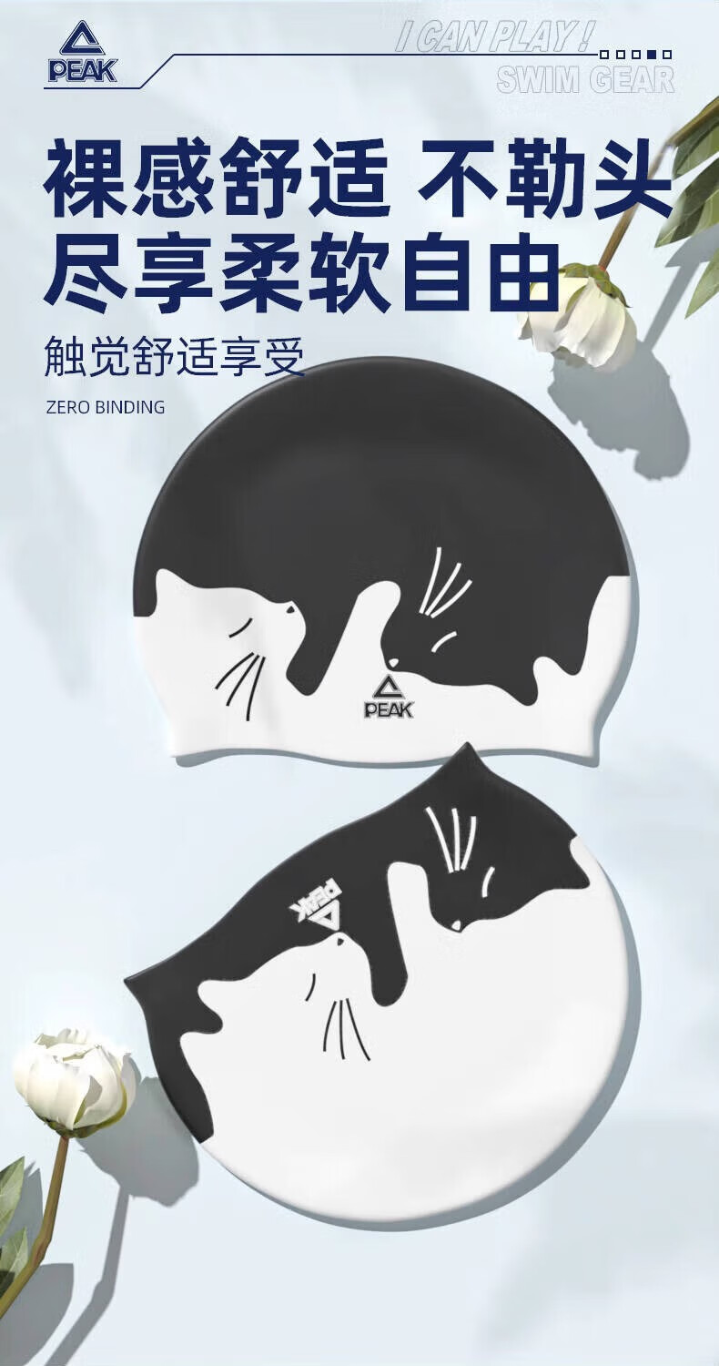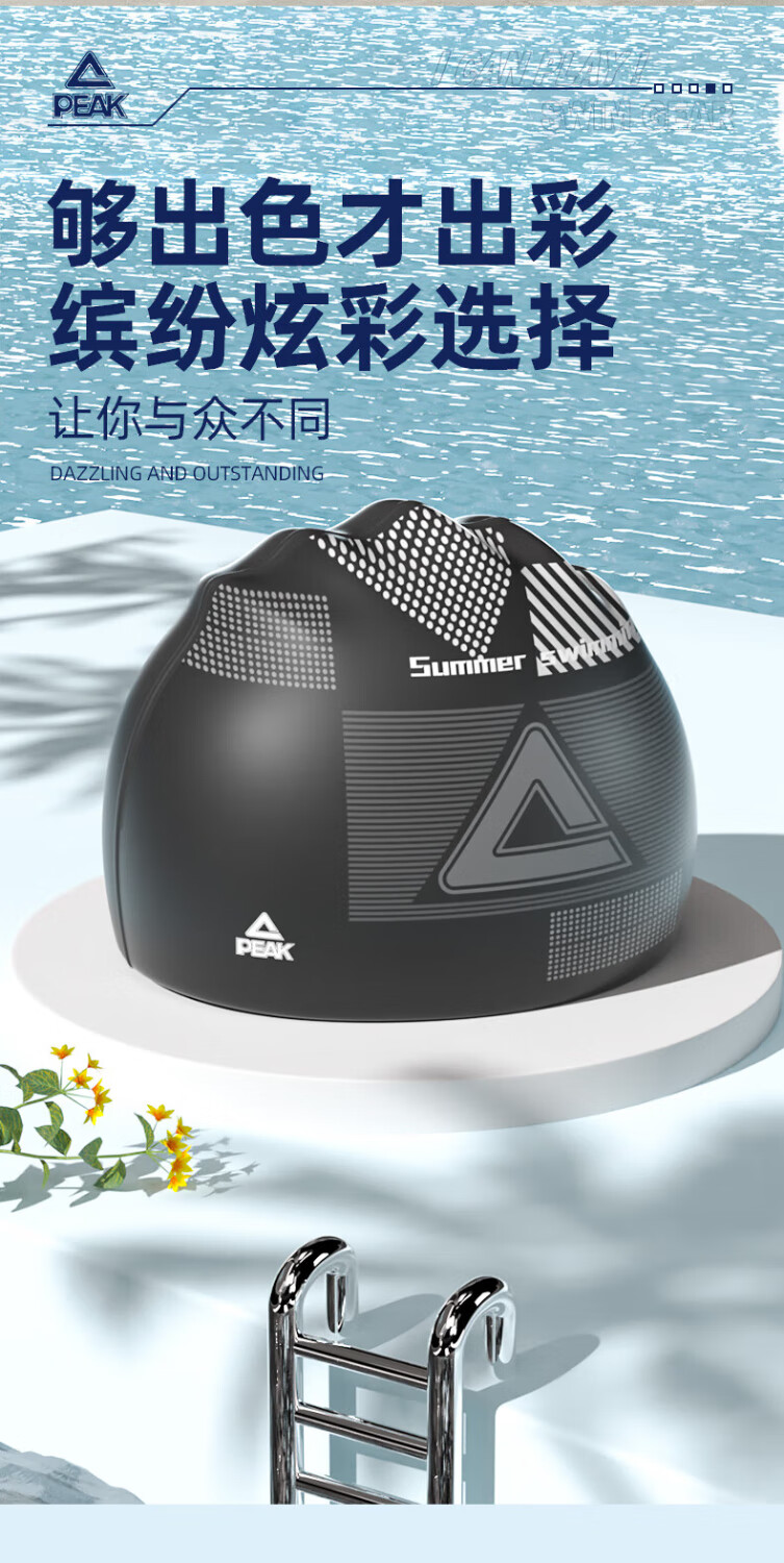 Peak Adult Swimming Cap Silicone Men's and Women's Long Hair Large Swimming Hat Waterproof No-Fat Professional Swimming Equipment Black