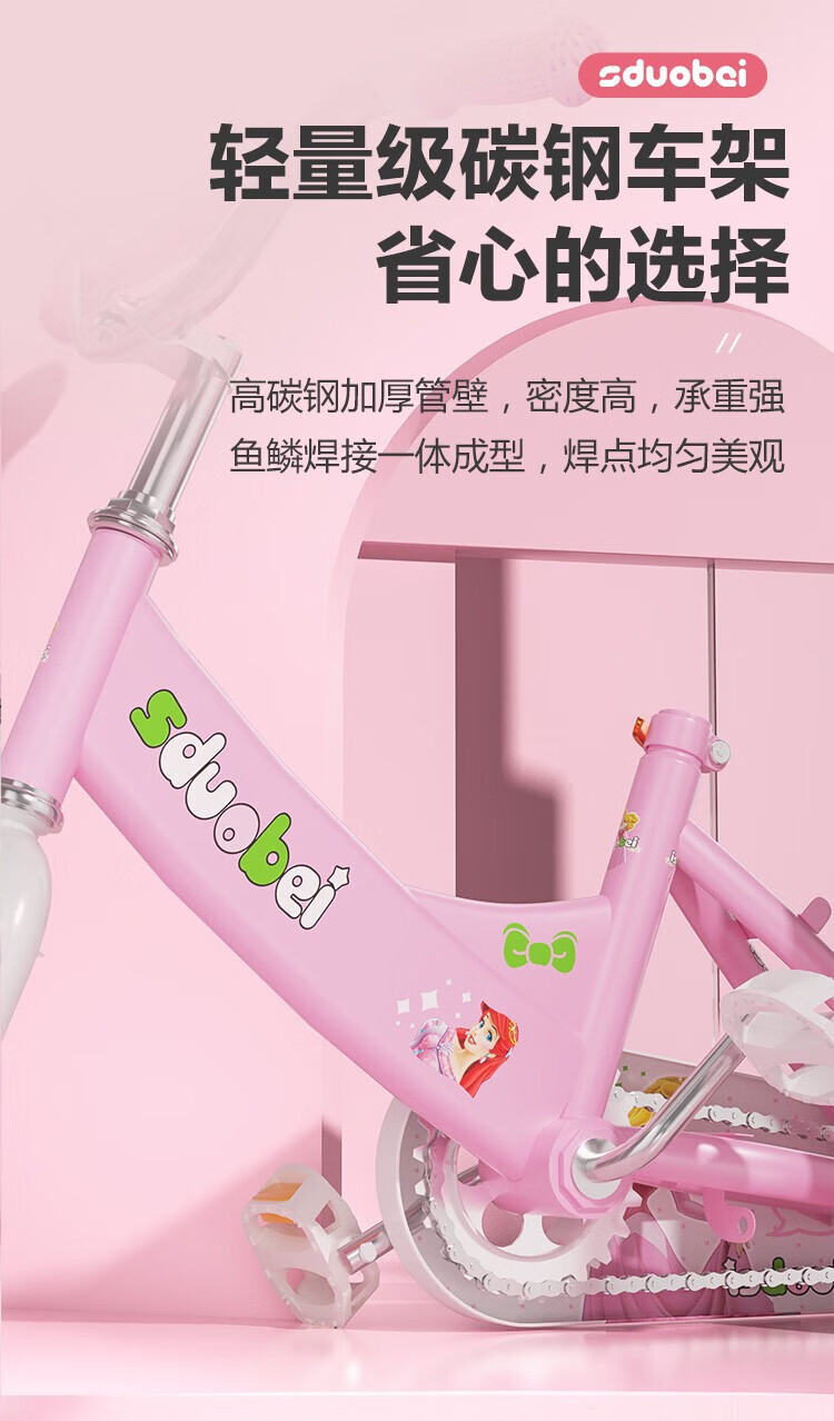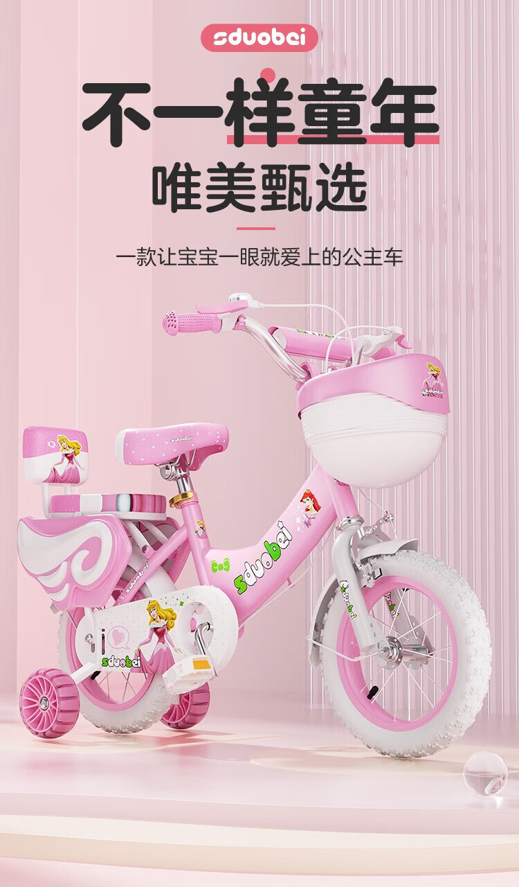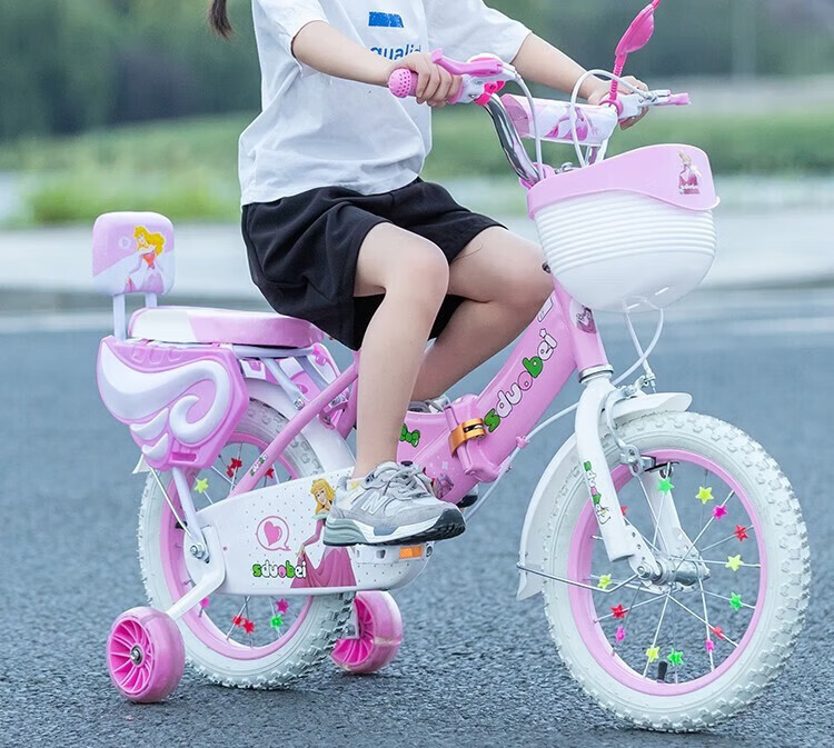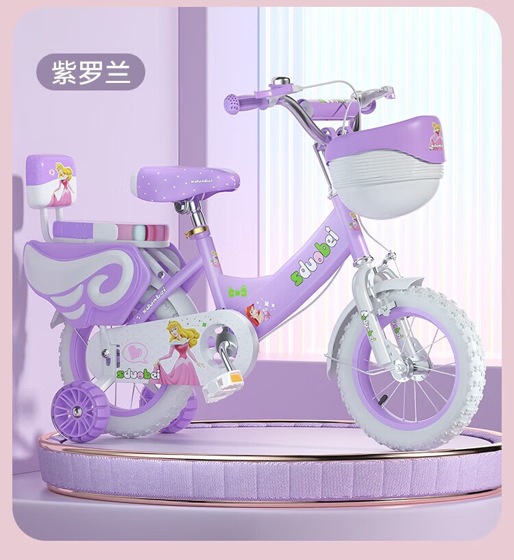 Amida children's bicycle girls 3-6 years old 7-10 lightweight children's baby stroller bicycle princess bicycle high-end purple auxiliary wheels + reinforced body + backrest 12 inches suitable for height 80-105cm + gift bag