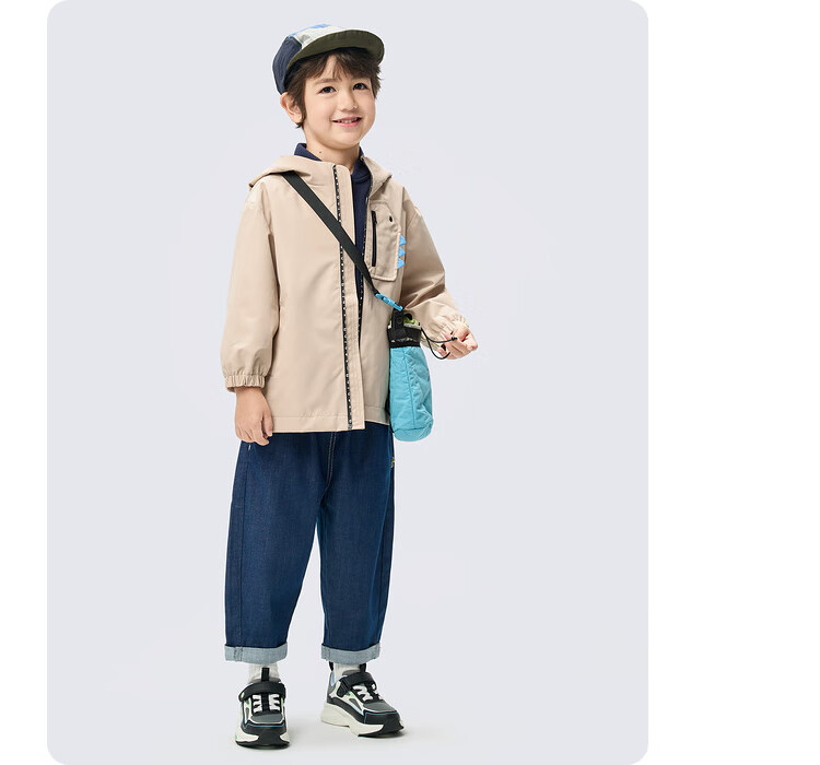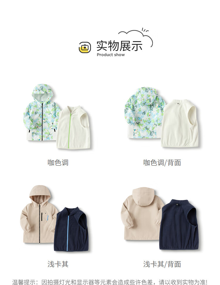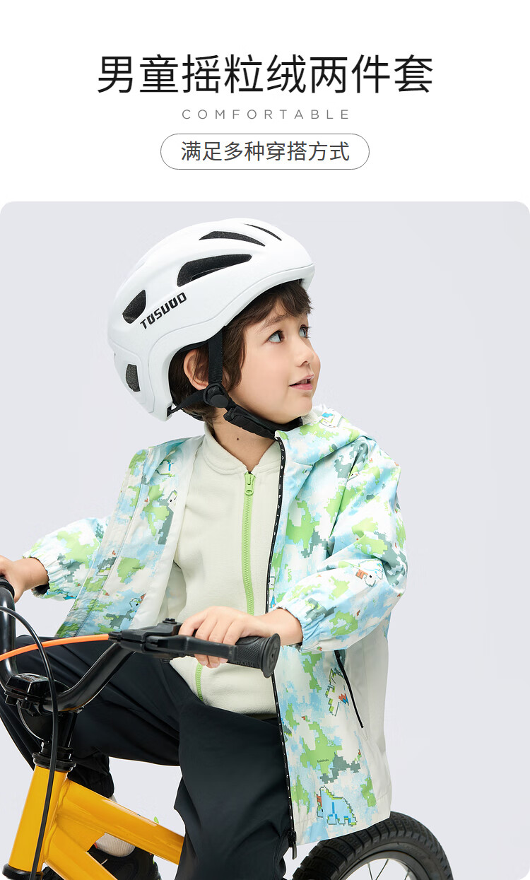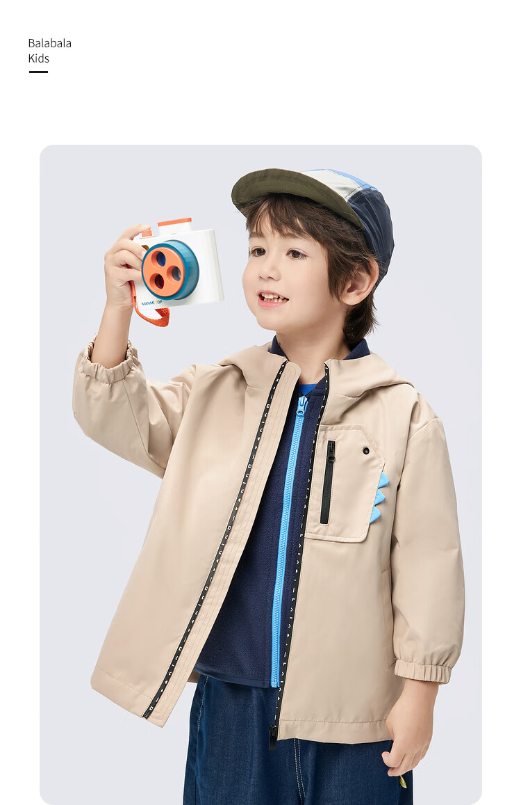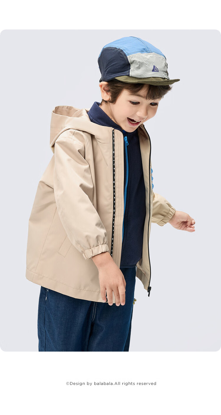 Balabala soft shell jacket for boys, autumn polar fleece two-piece set, trendy coffee tone 120 cm