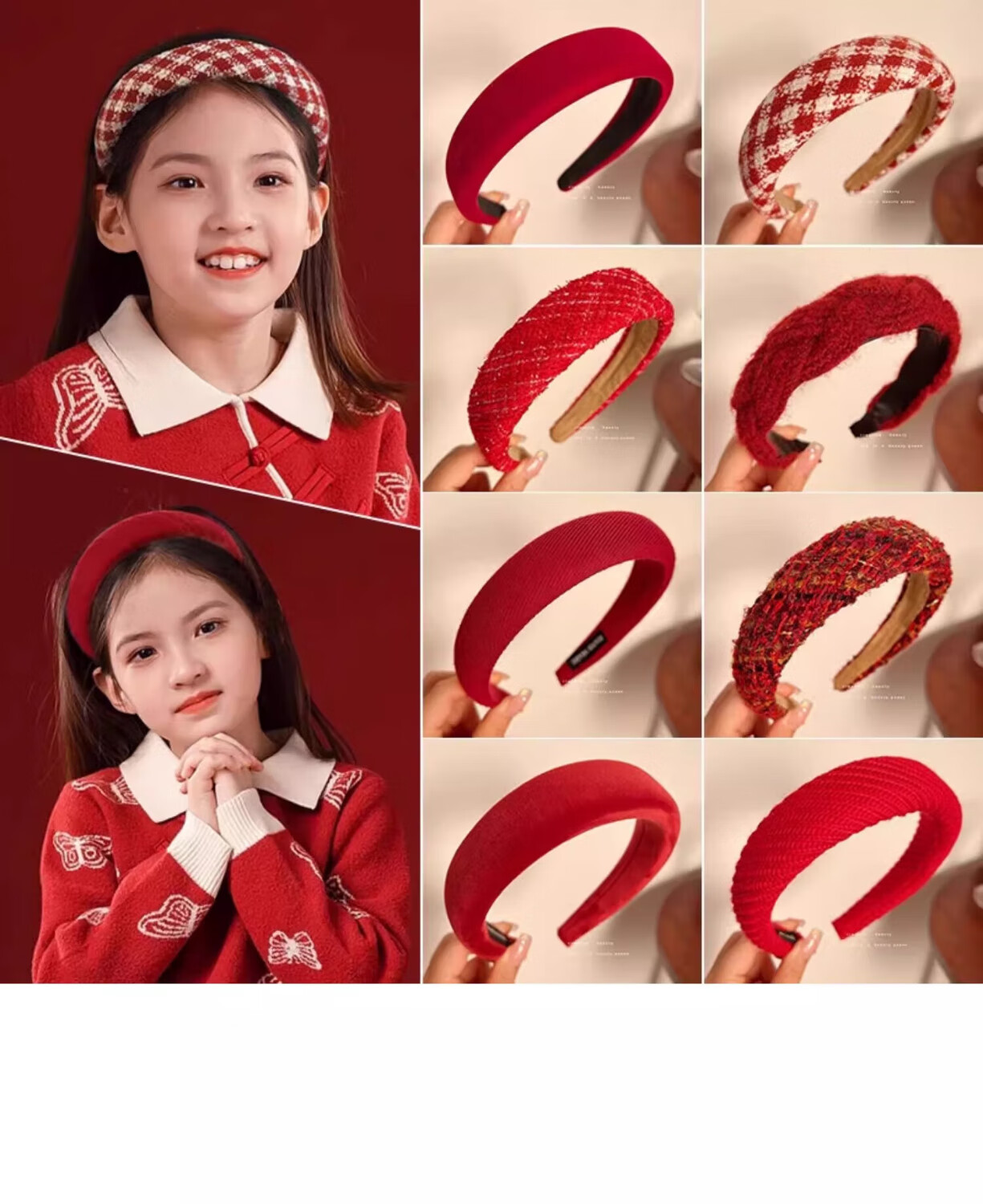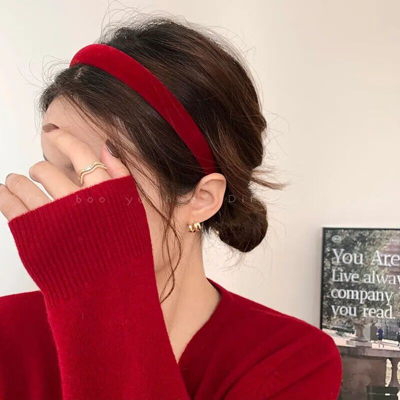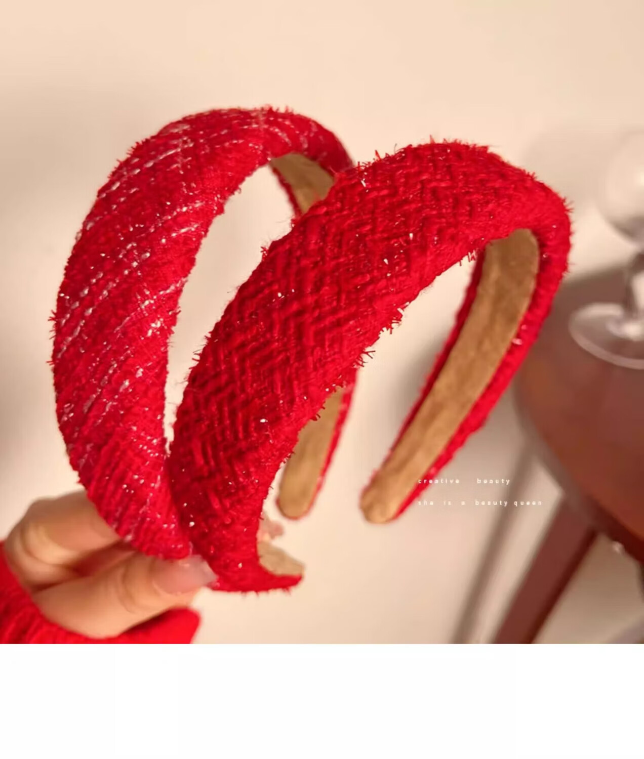 Danqin Retro New Year Red Hair Hoop Women's Heightening Headband Pressing Hair Headwear Temperament High Skull Top 2025 New Red Wide-Brim Headband