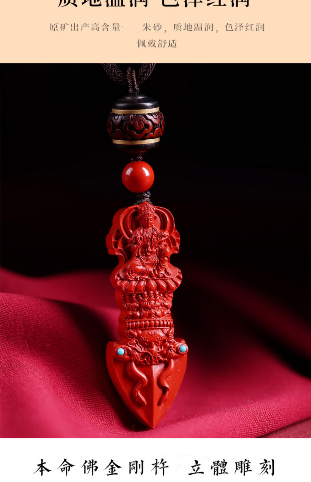 Langkaidanton cinnabar natal Buddha raw ore Vajra pestle pendant for men's zodiac year pendant, which belongs to rabbit, red sand and demon pestle, belongs to dog and pig, Amitabha