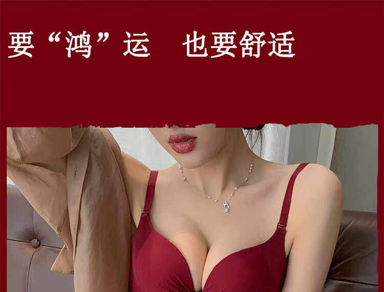 Maohuo Thin Year of the Horse Underwear Without Wires Push-Up Small Breasts Wedding Year of the Year Red Bra Set Valentine's Day Gift for Women Red Gift Box 75B =34B