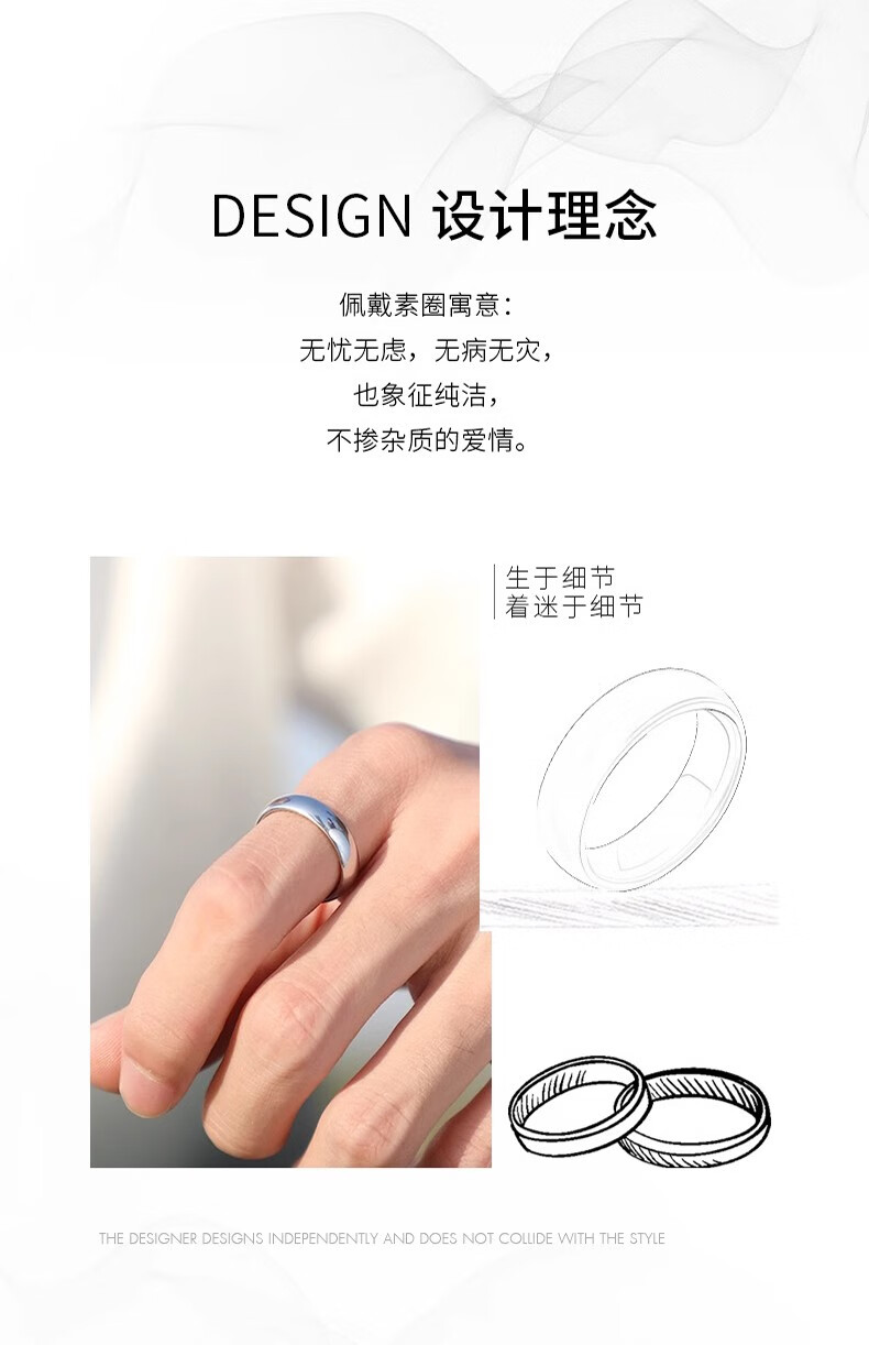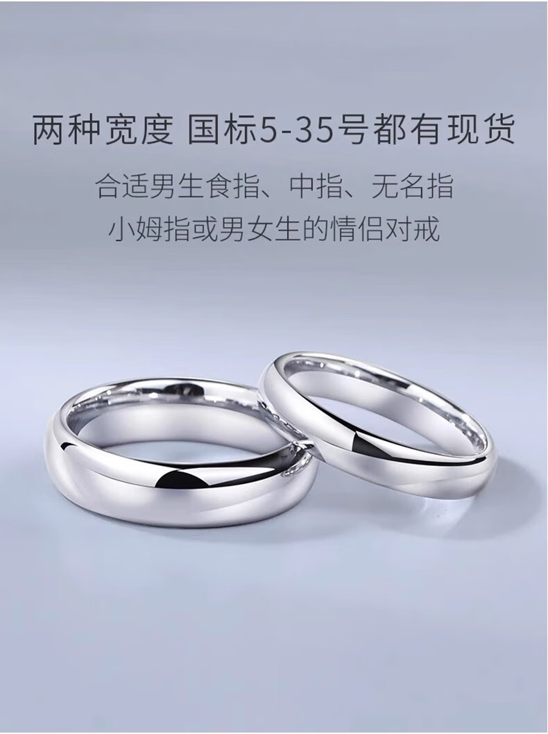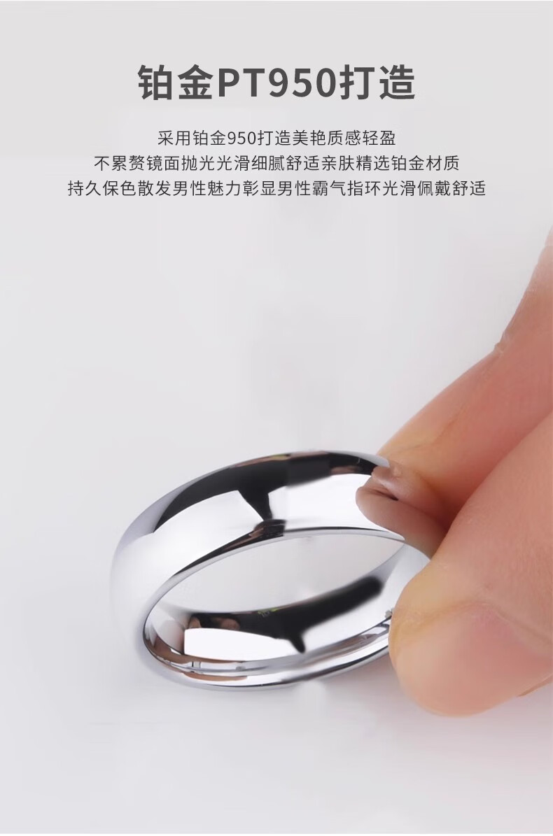 SHENGSHIQIYUAN pt950 platinum ring men's high-end platinum ring women's couple ring plain ring smooth ring sold individually No. 12 5.8-6.3g