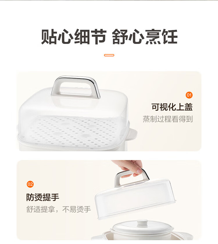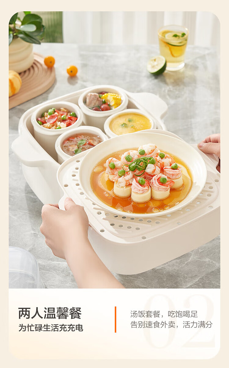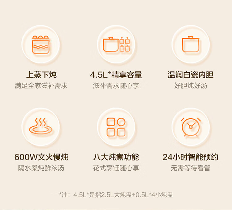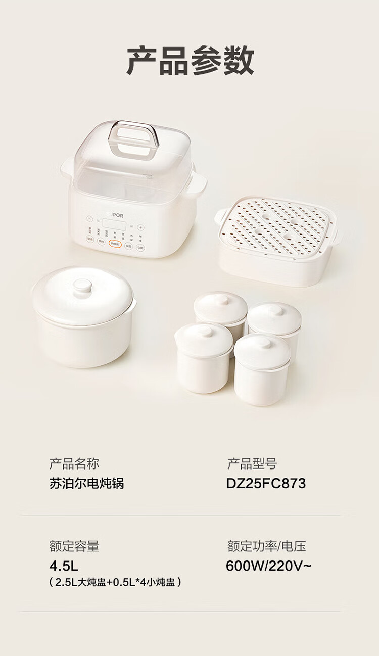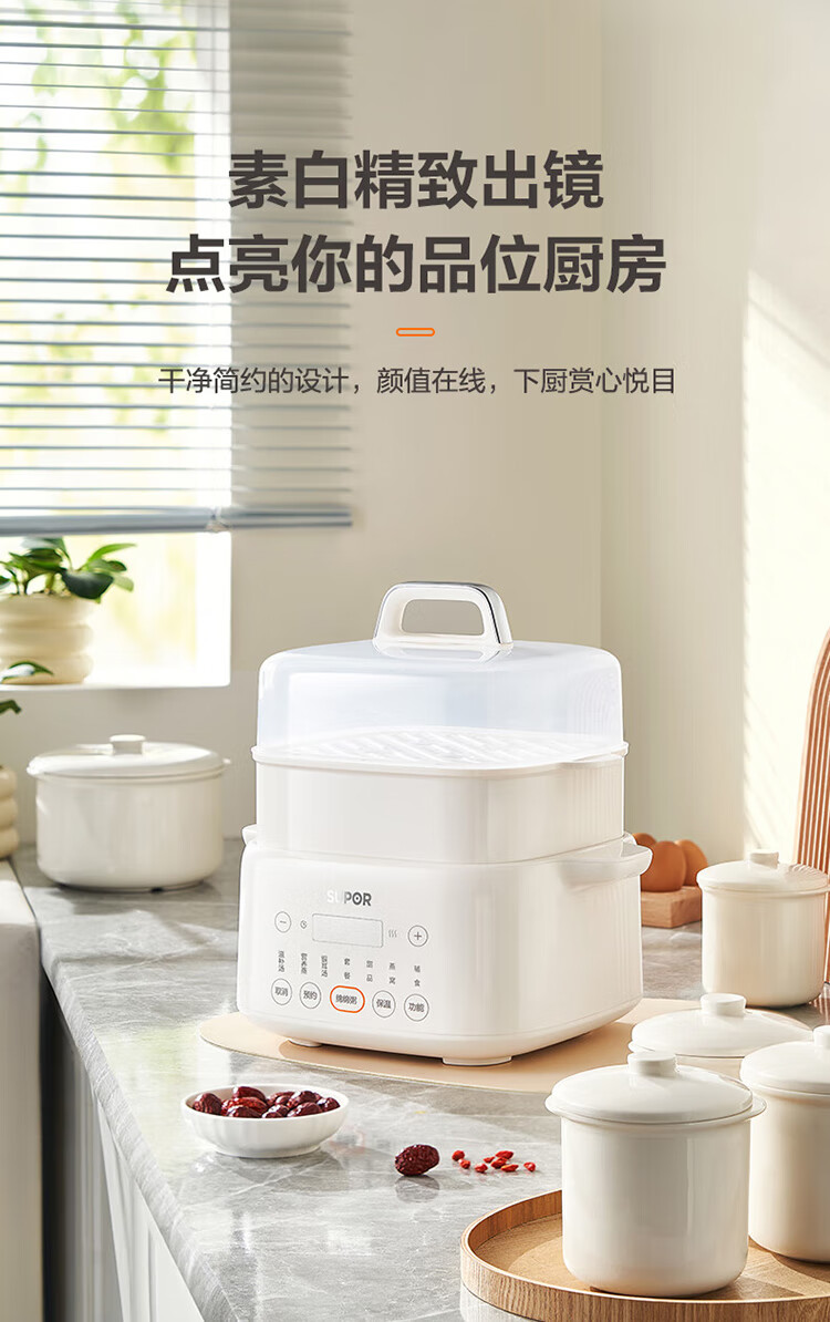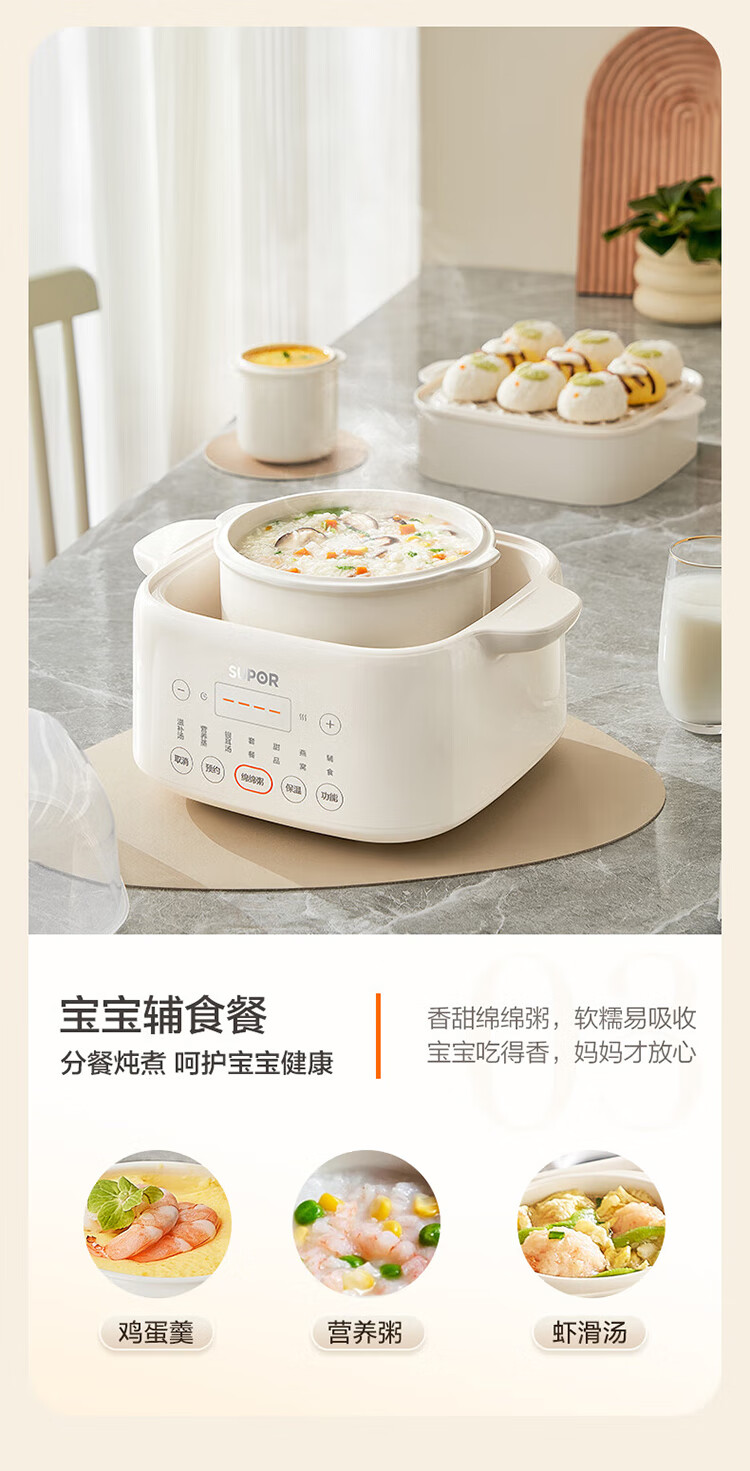 Supor electric stew pot, bird's nest stew pot, water-proof stew pot, household use for 3-4 people, stewed fish maw soup pot, white porcelain, 5 inner pots, stewing and steaming, multifunctional baby food supplement pot, porridge artifact, five pots in one pot + 24h smart appointment, 4.5L high quality white porcelain