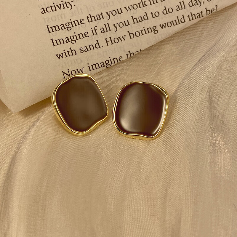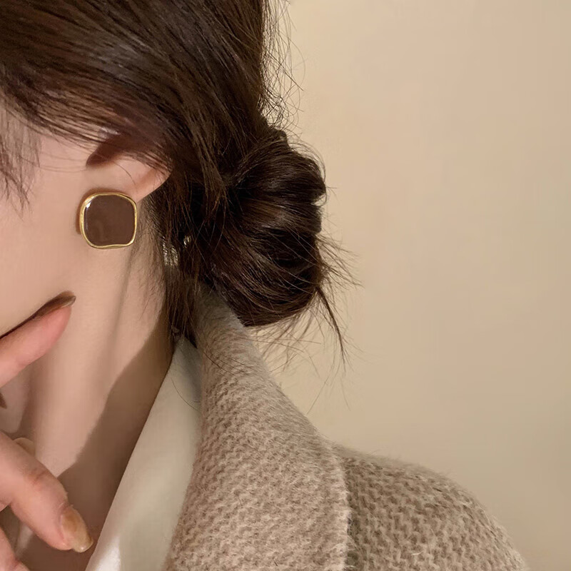 Youfang dripping glazed square earrings 2025 new trendy simple cold style retro temperament unique niche high-end earrings gold one pair
