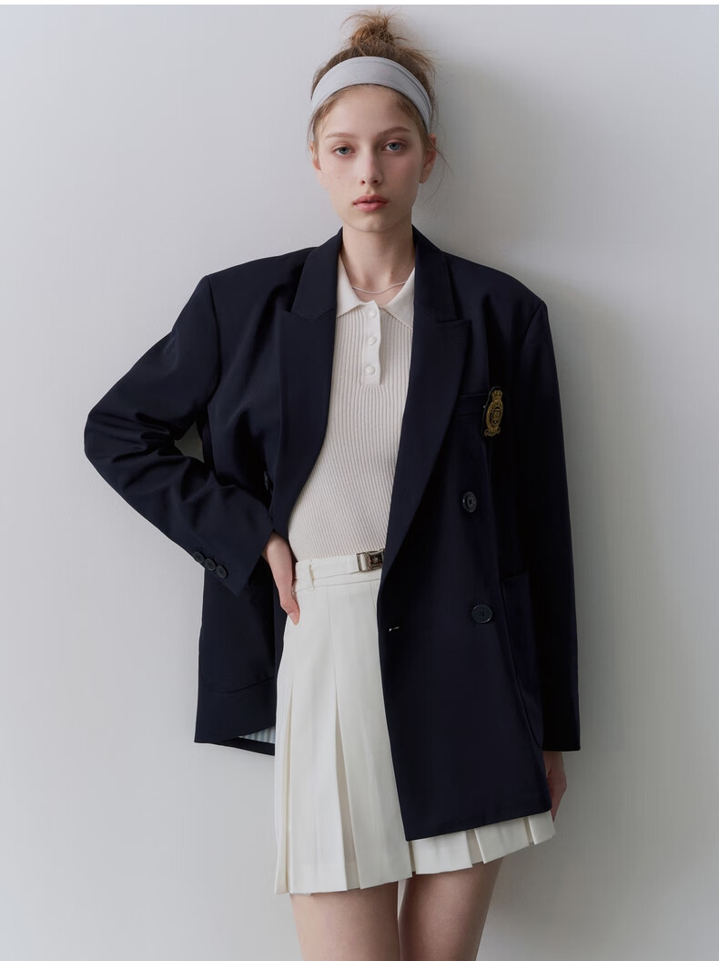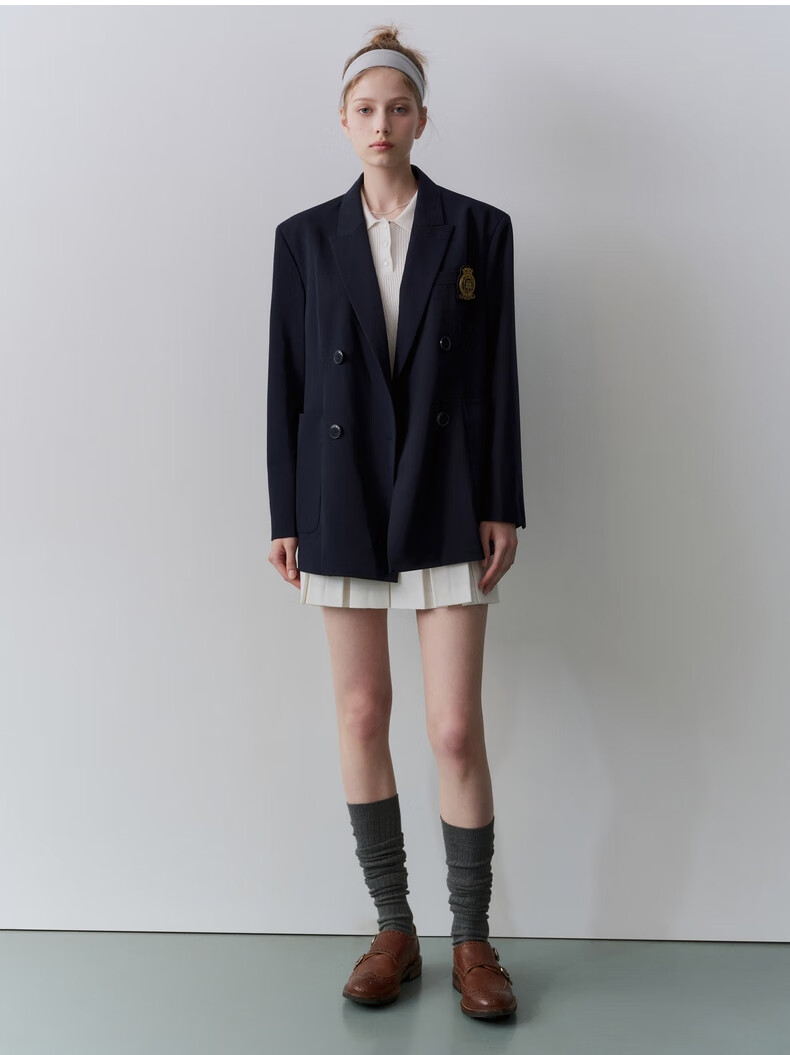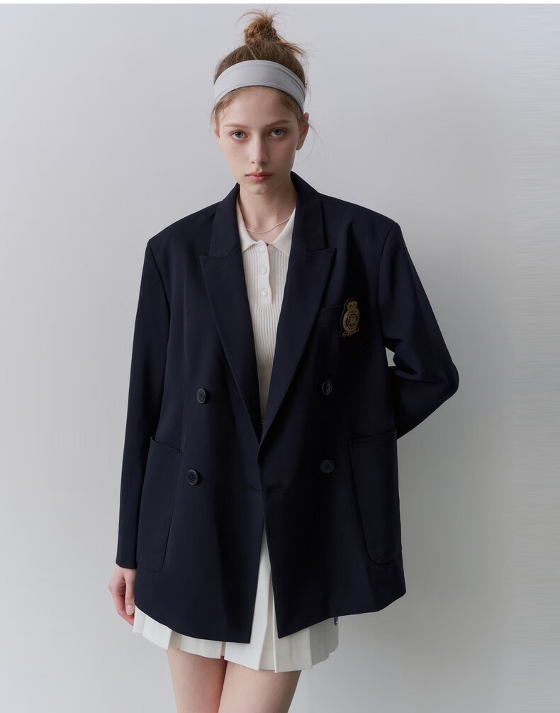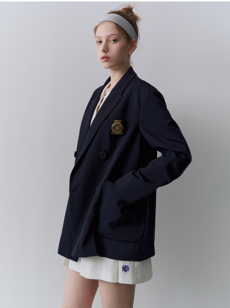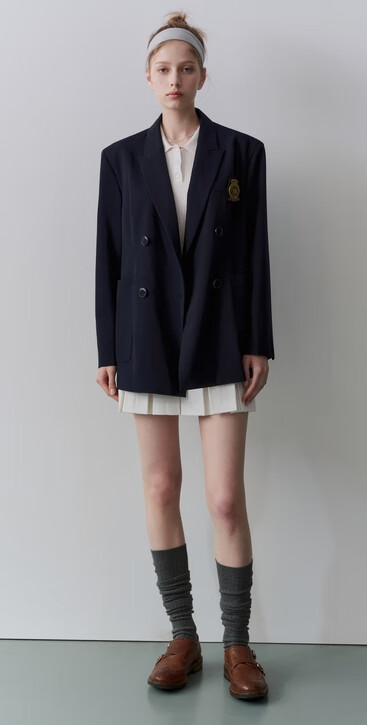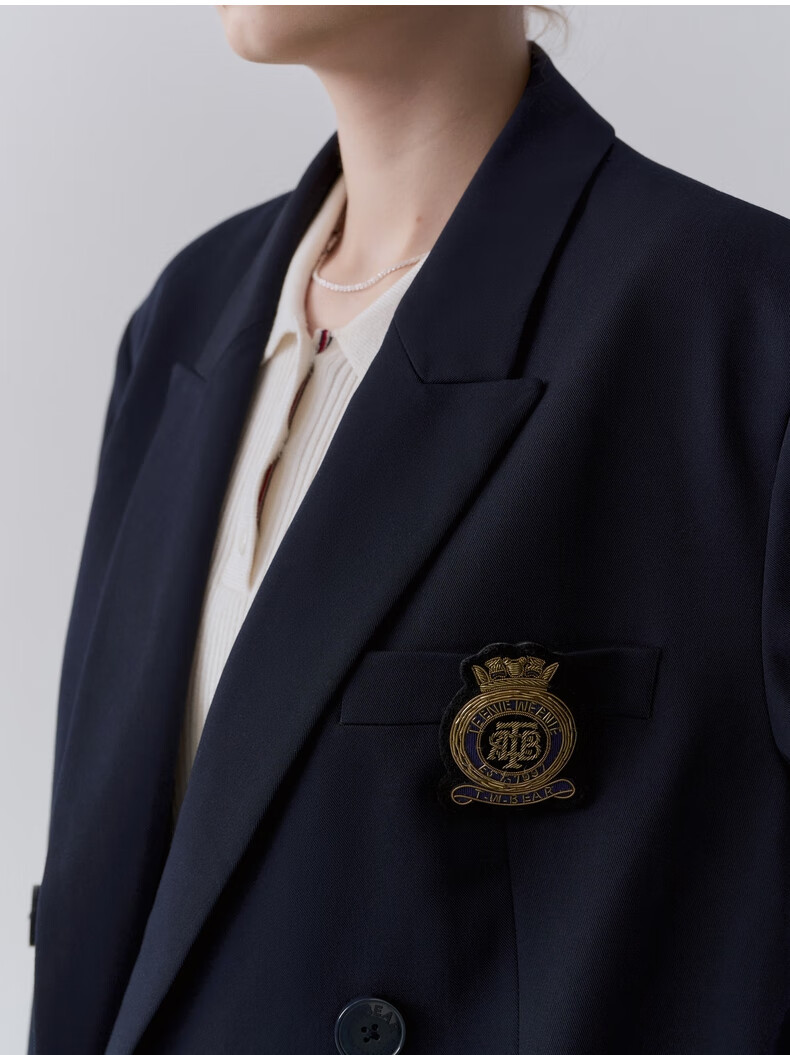 Teenie Weenie bear blazer women's spring casual college style mid-length light business fashion simple blazer women's navy blue S (160)