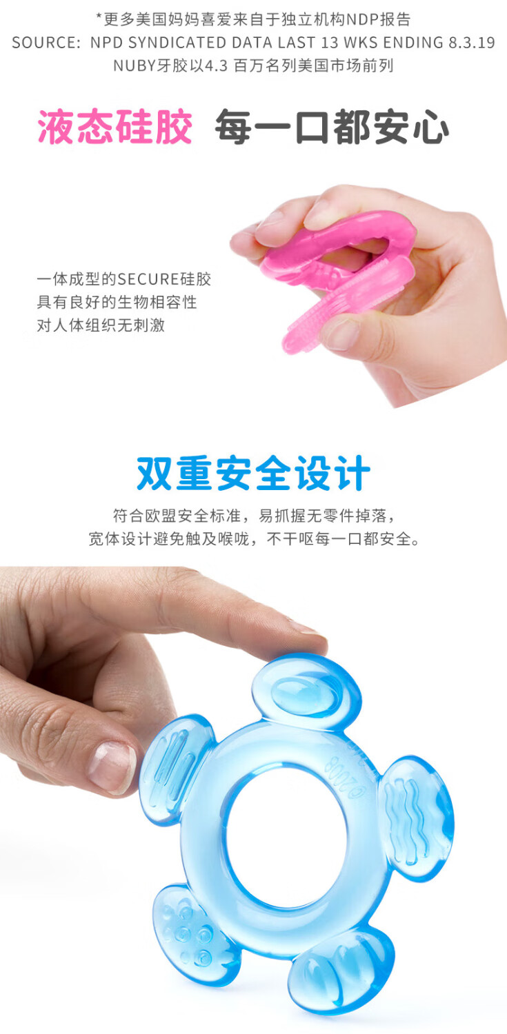 Nuby (Nuby) Teether Silicone Soft Teether Baby Bite Teeth Baby Anti-eating Artifact Hand Grinding Teeth Fixing 3 Pack Green Blue Yellow 3 Pack