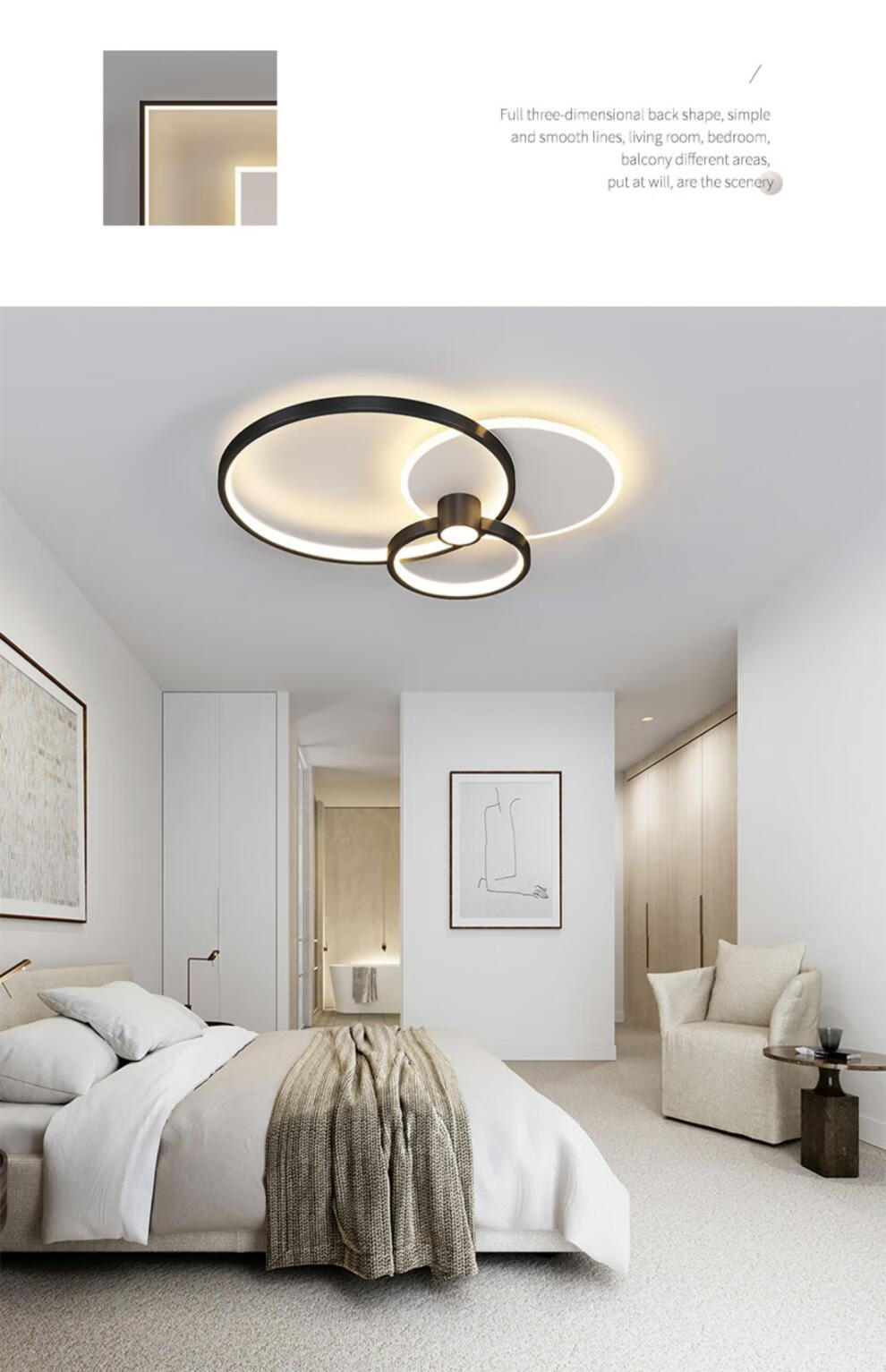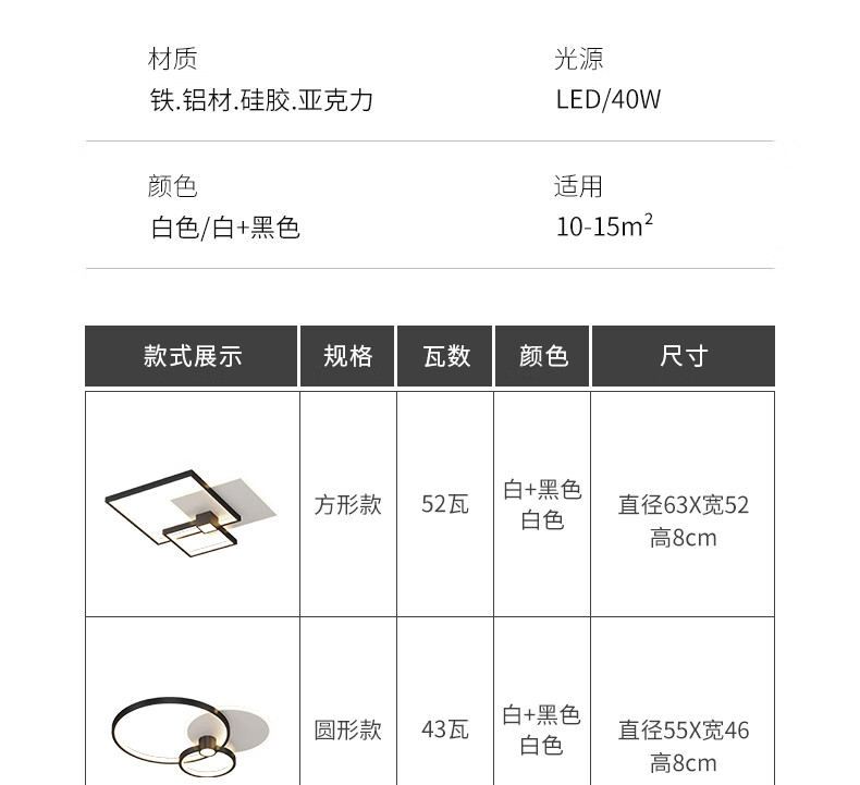 Yongzhi master bedroom lamp high-end 2024 new minimalist room lamp room study lamp atmospheric new Internet celebrity Zhongshan Oval white + black 45*7CM three colors
