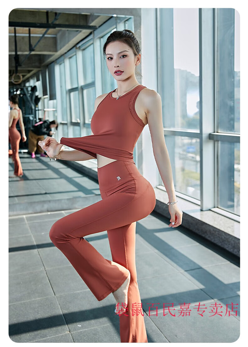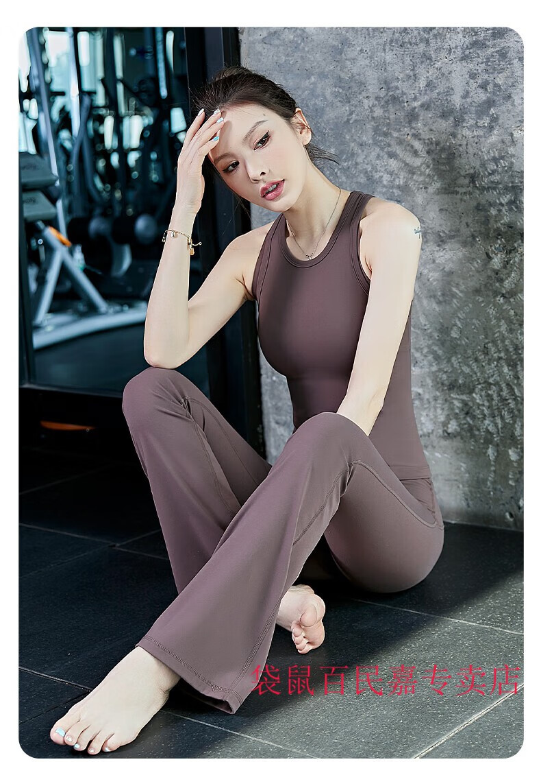 Kangaroo (DAISHU) Yoga Wear Vest Female Internet Celebrity Spring Model with Breast Pad Professional High-end Sleeveless Pilates Sports Fitness Wear Set Premium Black Bra + Premium Black Pants Fixed Chest XL