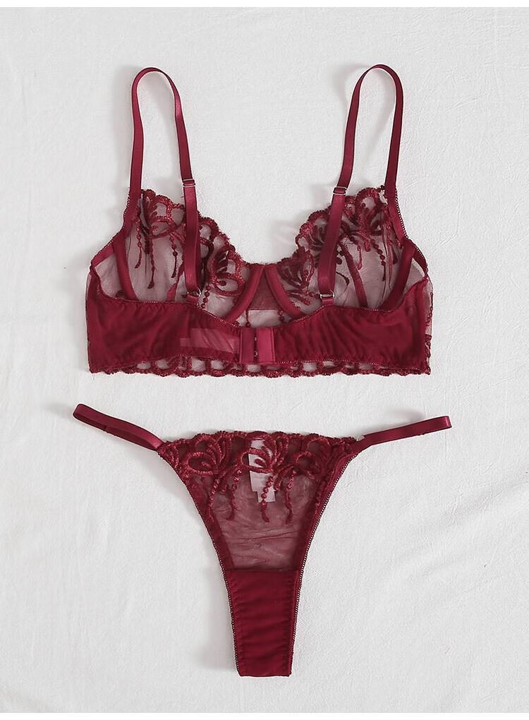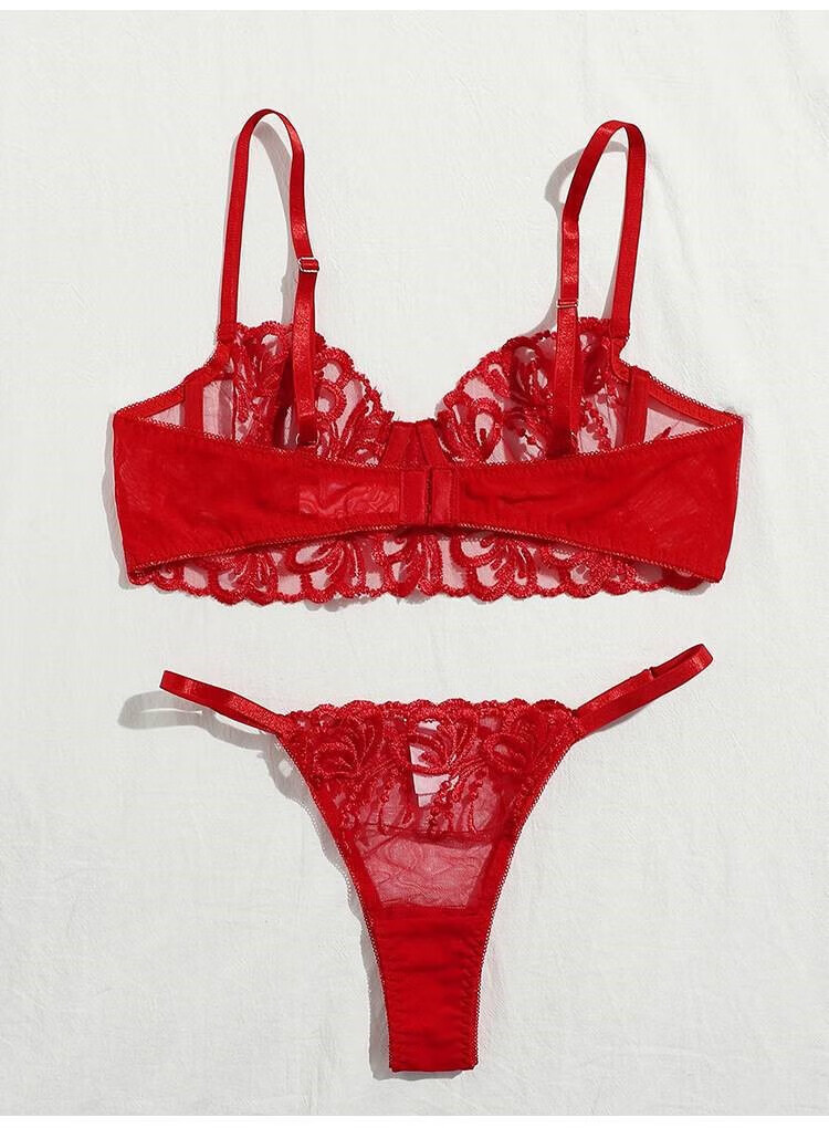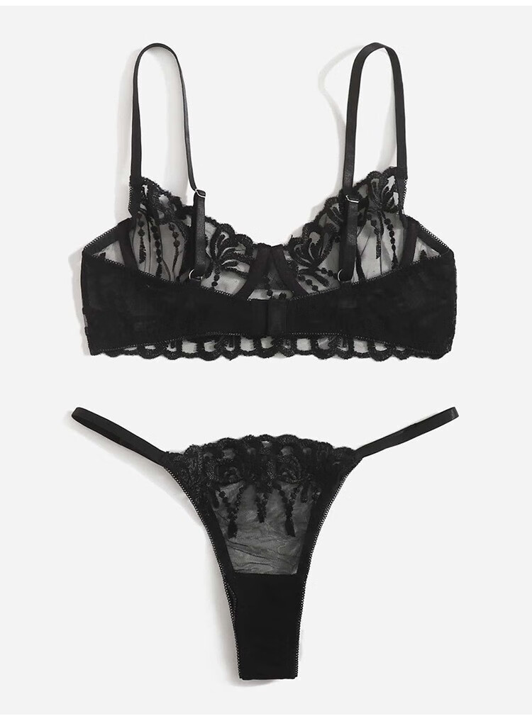 CARVELOVElace embroidery sexy underwear twopiece suit black XL