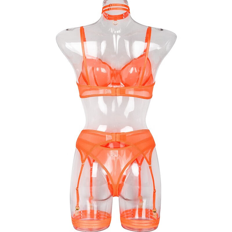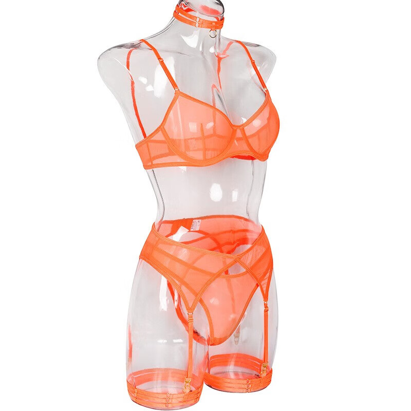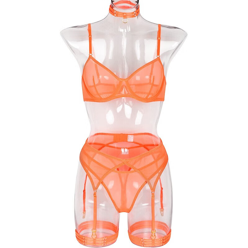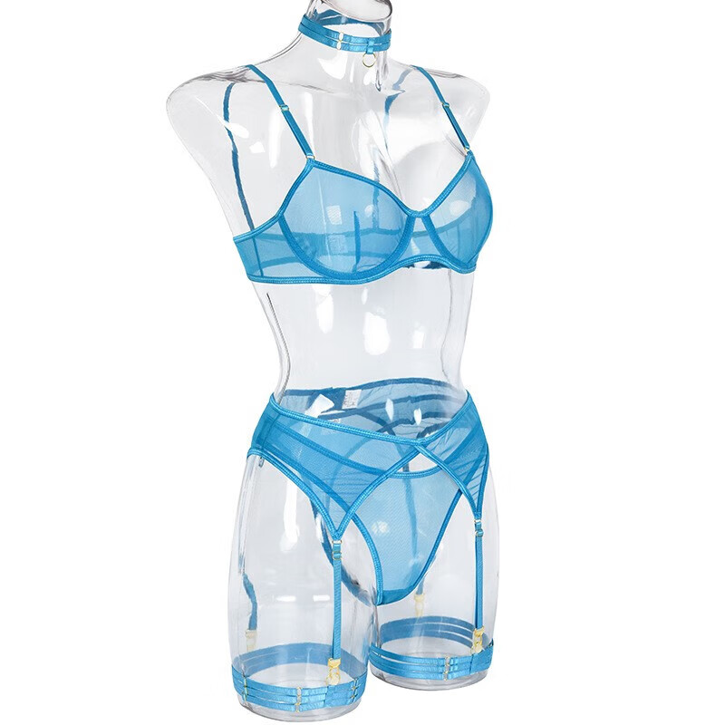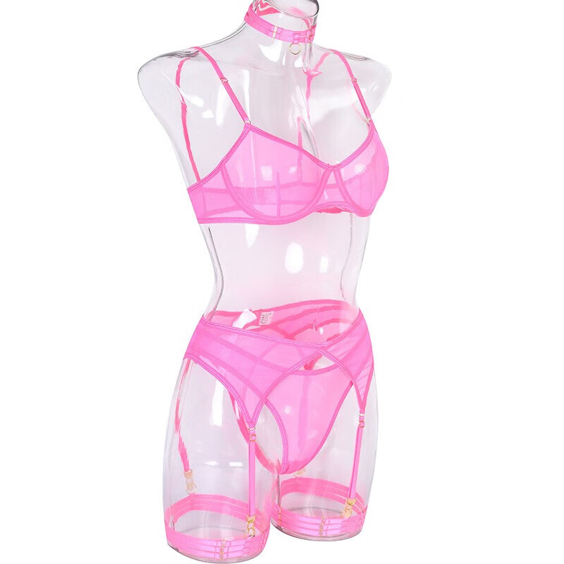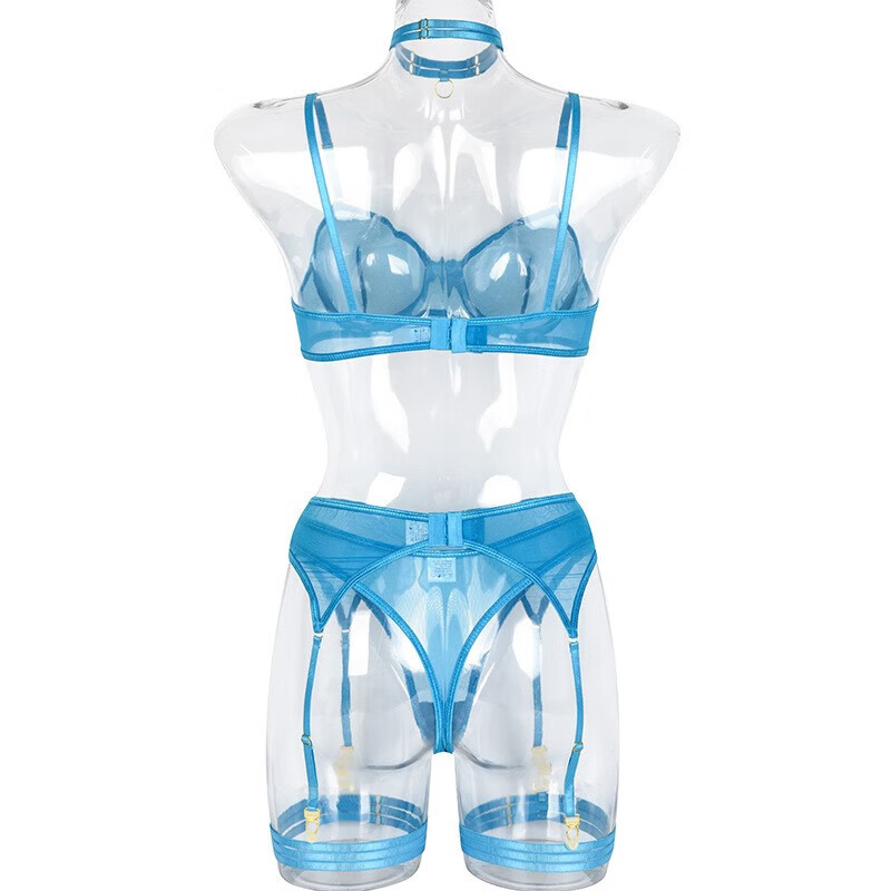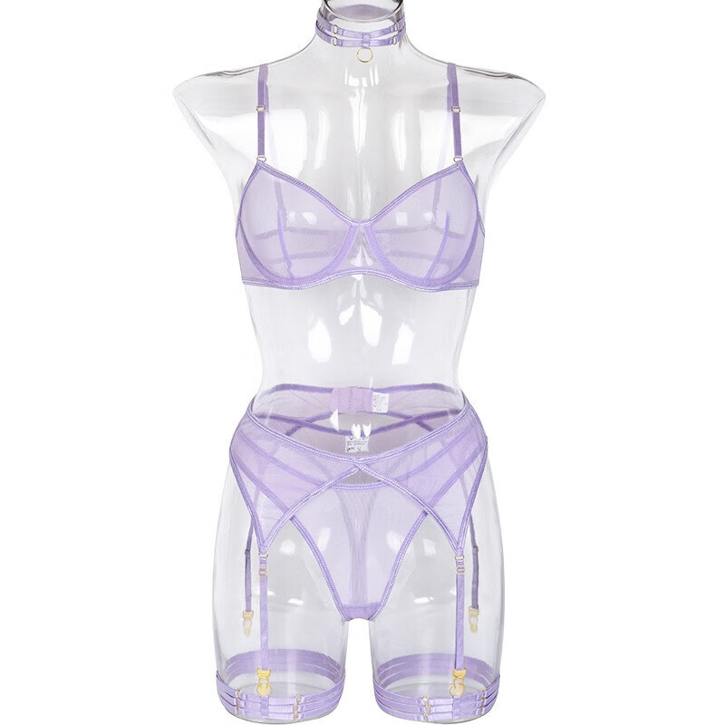 CARVELOVESexy mesh sexy fourpiece set with steel ring four piece set black S