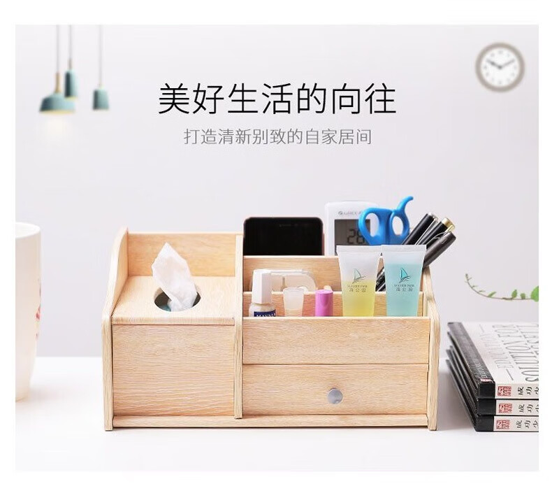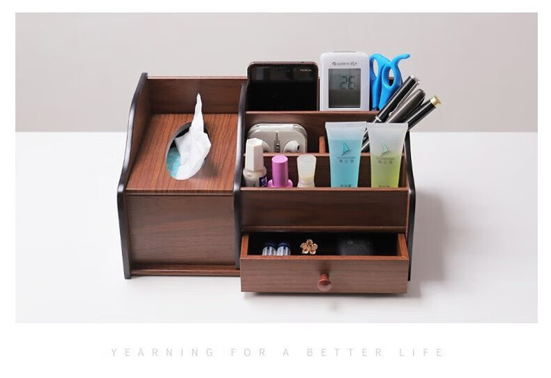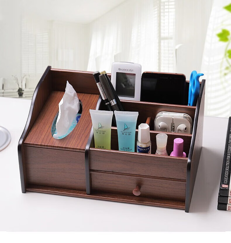 Bonboshi Wooden Tissue Box Living Room Coffee Table Remote Control Storage Box Creative Paper Box Home Multifunctional Desktop Office Multifunctional Tissue Box Walnut Color