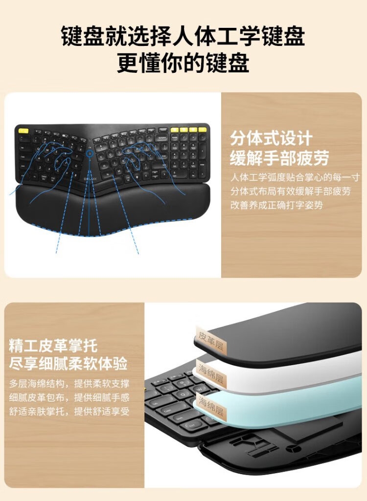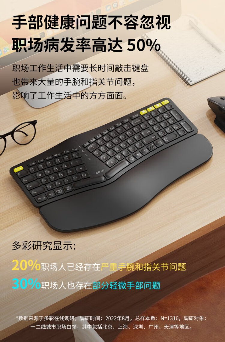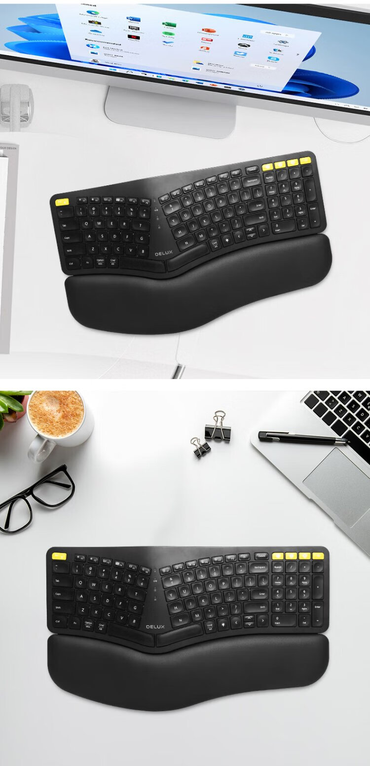 Colorful (Delux) GM902pro ergonomic keyboard Wireless Bluetooth soft keys Computer office scissor keyboard Mouse and keyboard set programmer white light GM902pro white + M618DB white