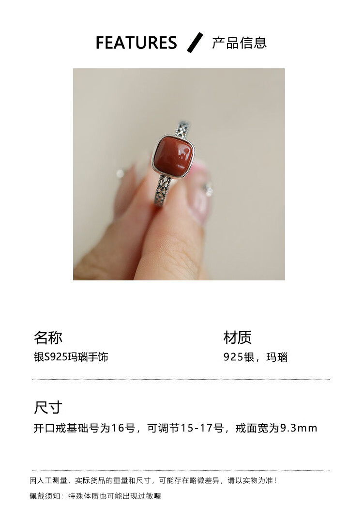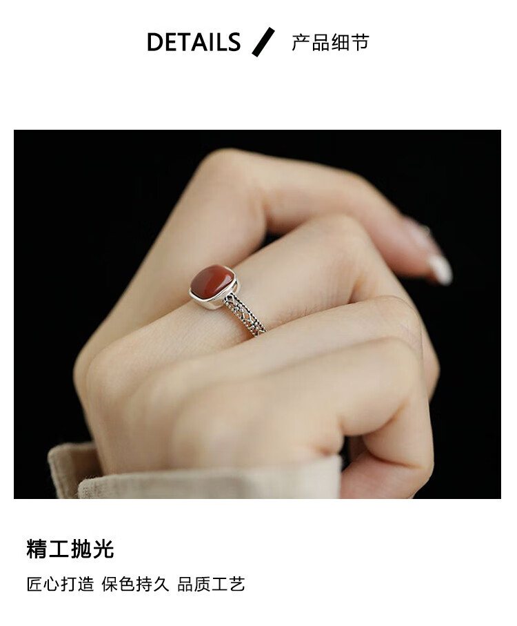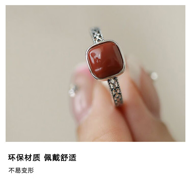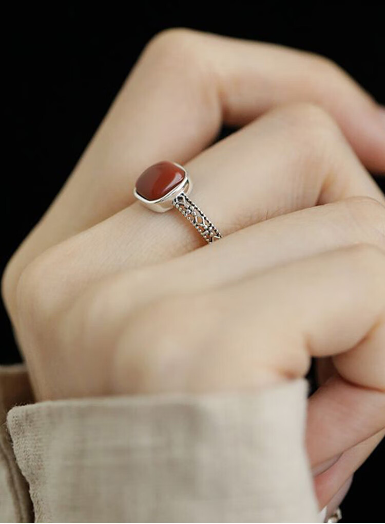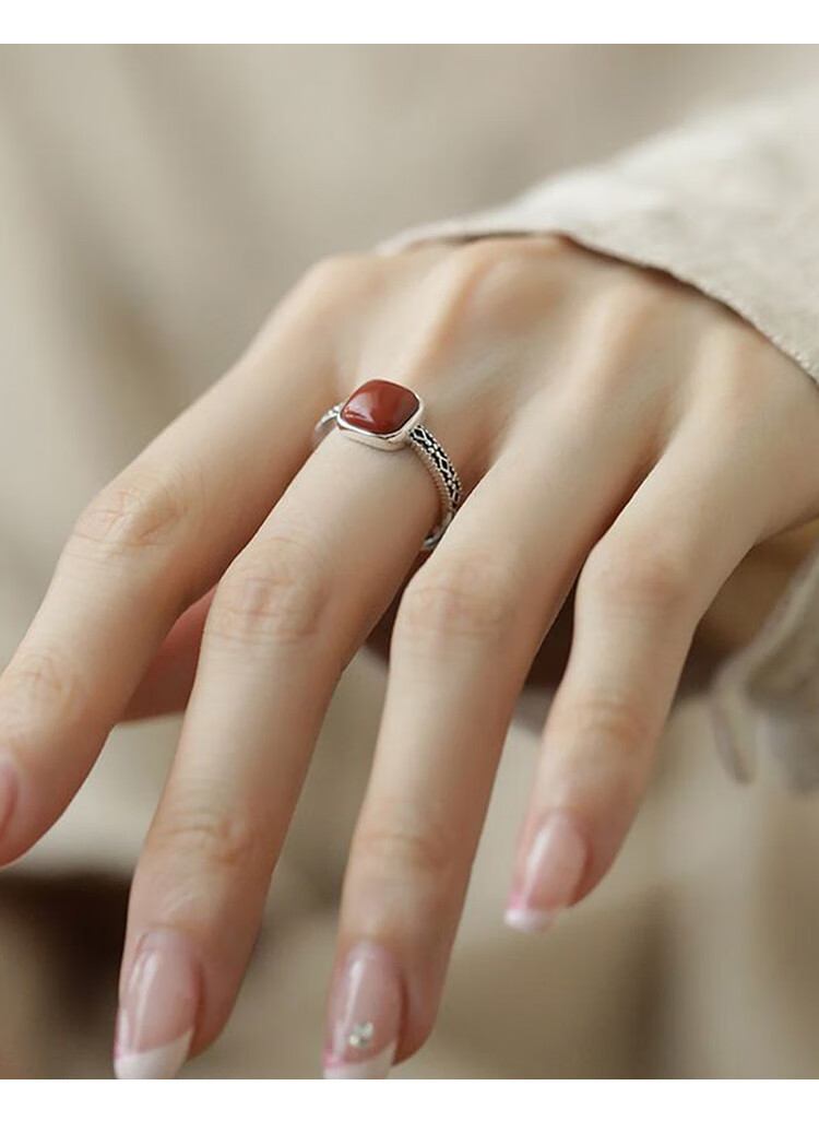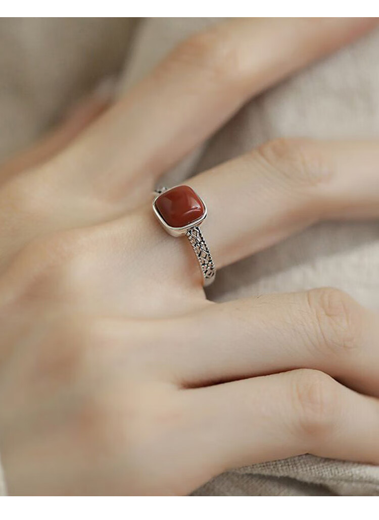 BOIGO925 silver ring for women, southern red agate sugar cube open ring, national trendy Chinese style retro niche index finger gift for girls