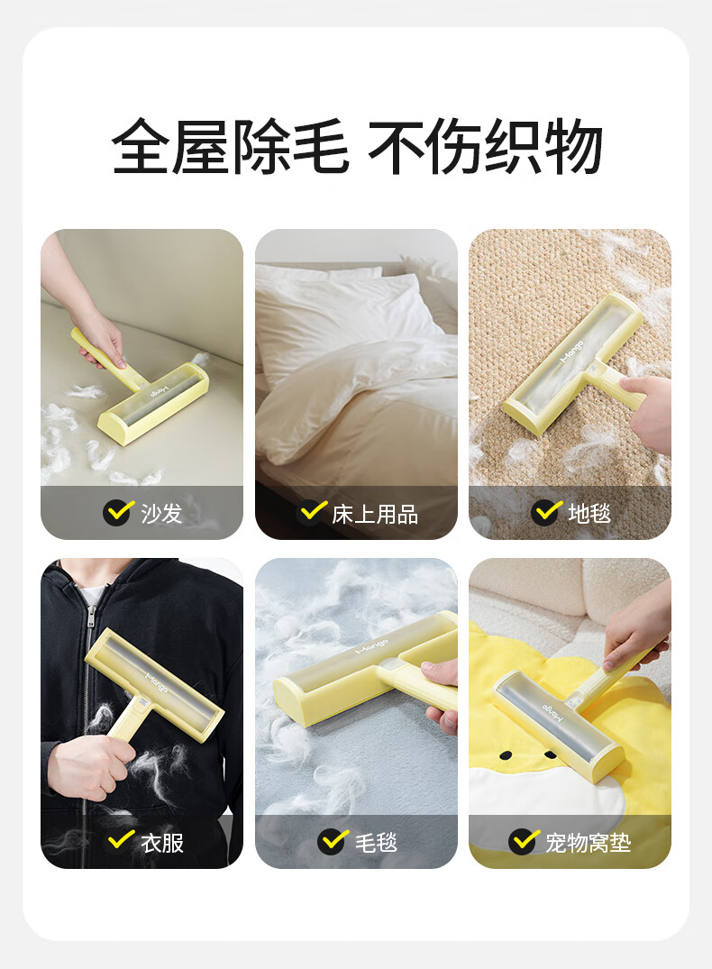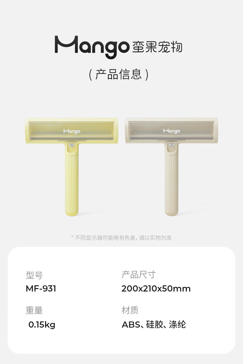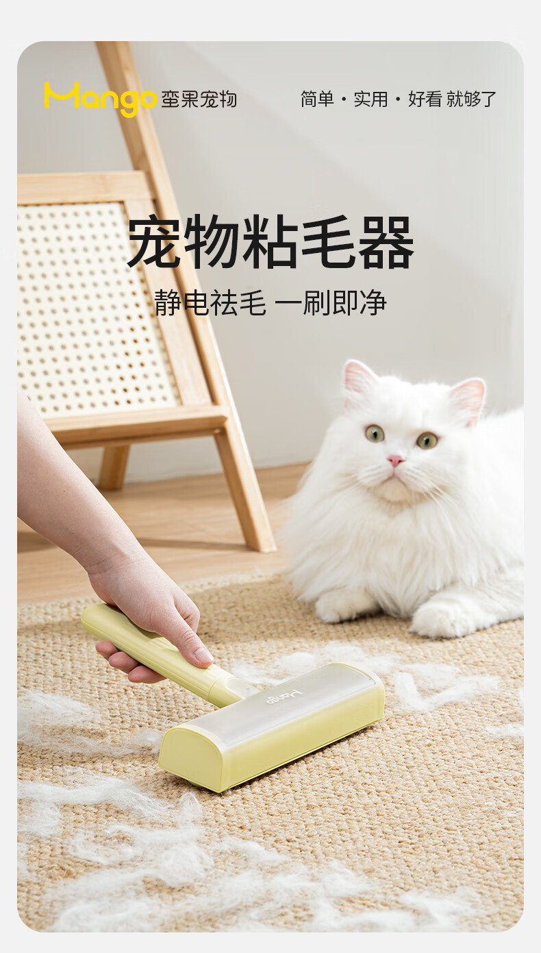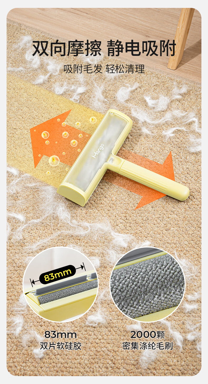 Mango pet cat hair cleaner, cat hair suction tool, cat hair removal brush, cat hair scraper, electrostatic sticky brush, Mango Yellow static sticky brush