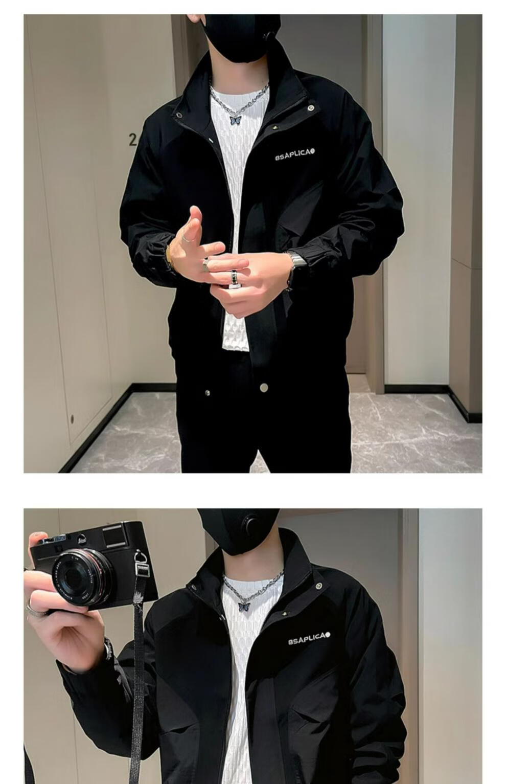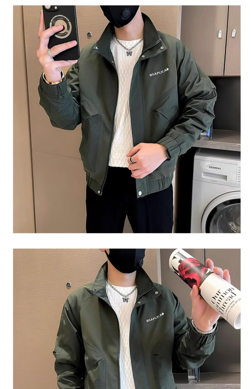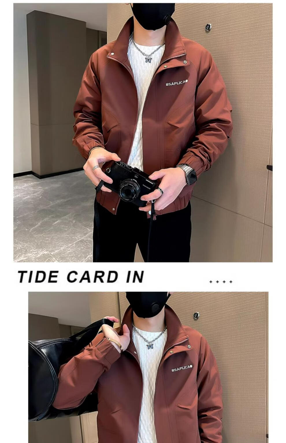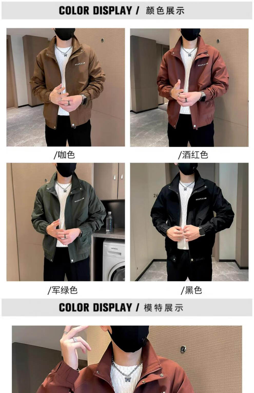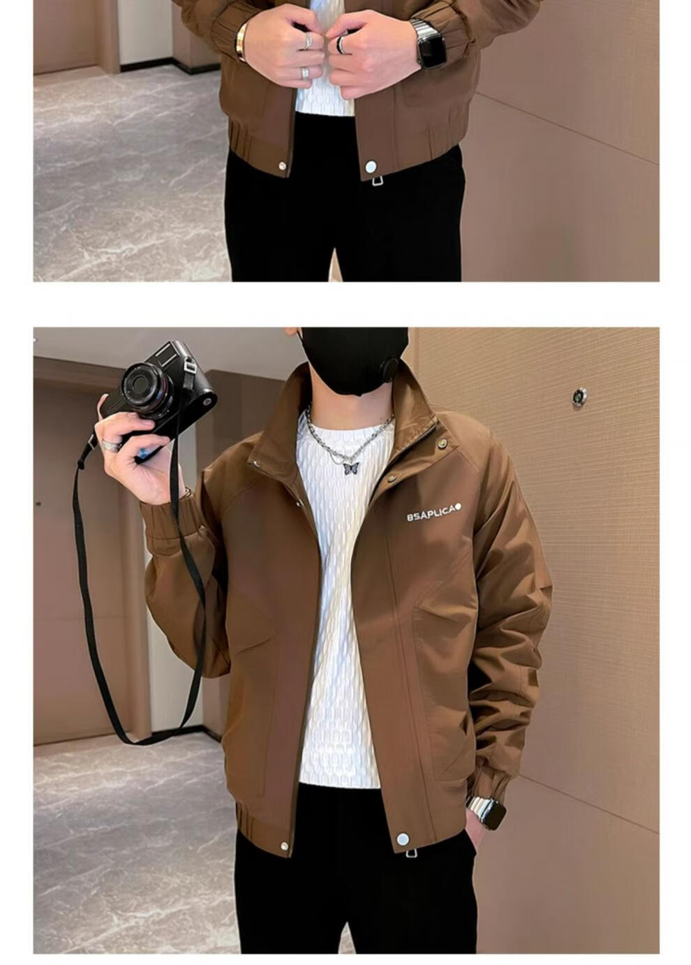 ROMON high-end workwear jacket men's autumn and winter trendy brand handsome embroidered jacket men's new velvet top men's coffee color regular L recommended 115-130Jin Jin equals 0.5 kg
