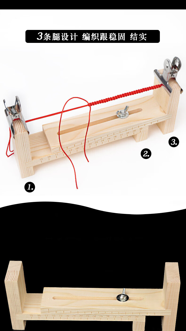 Pei Nanwei solid wood bracelet braiding artifact tool red rope braider hand rope braiding cord fixed frame hand-made rope stand three-legged solid wood braiding frame (including clip)