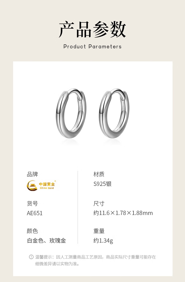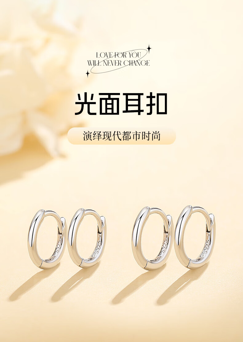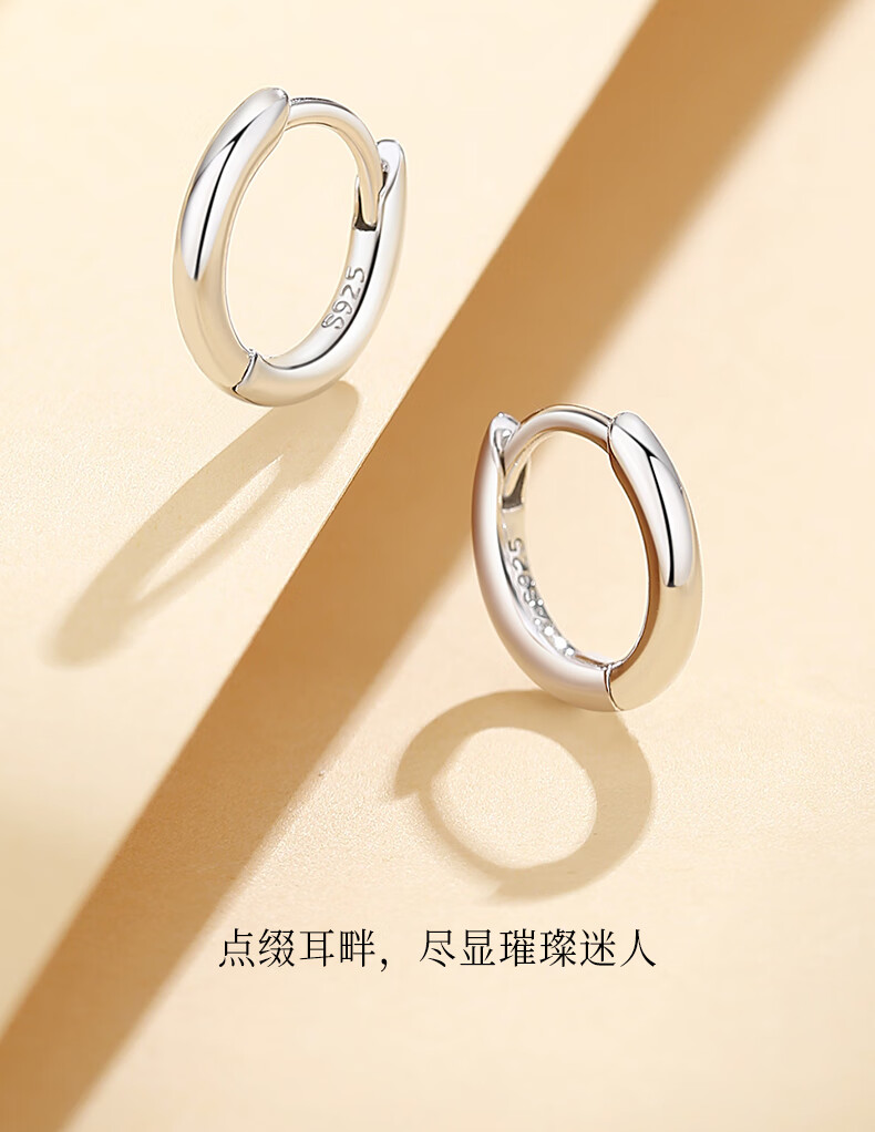 CHINA GOLD Sterling Silver Earrings for Women S925 Silver Glossy Hoop Earrings Versatile Silver Earrings Birthday Gift for Girlfriend and Wife Today/Next Day Delivery S925 Silver Glossy Earrings