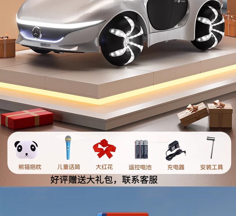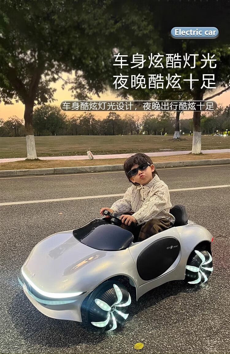 Chichengtong children's electric car children's electric car remote control car 1-6 years old can seat 1-3-6 year old boys, painted silver + four-wheel drive leather seat + remote control + gift bag remote control + early education + rocking car luminous body