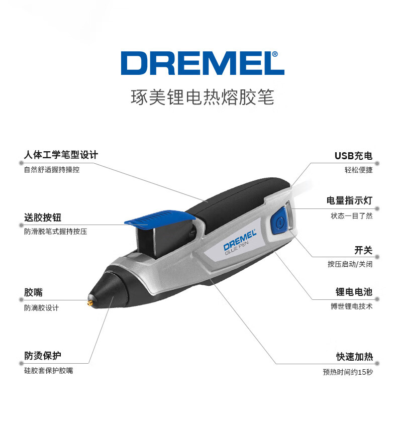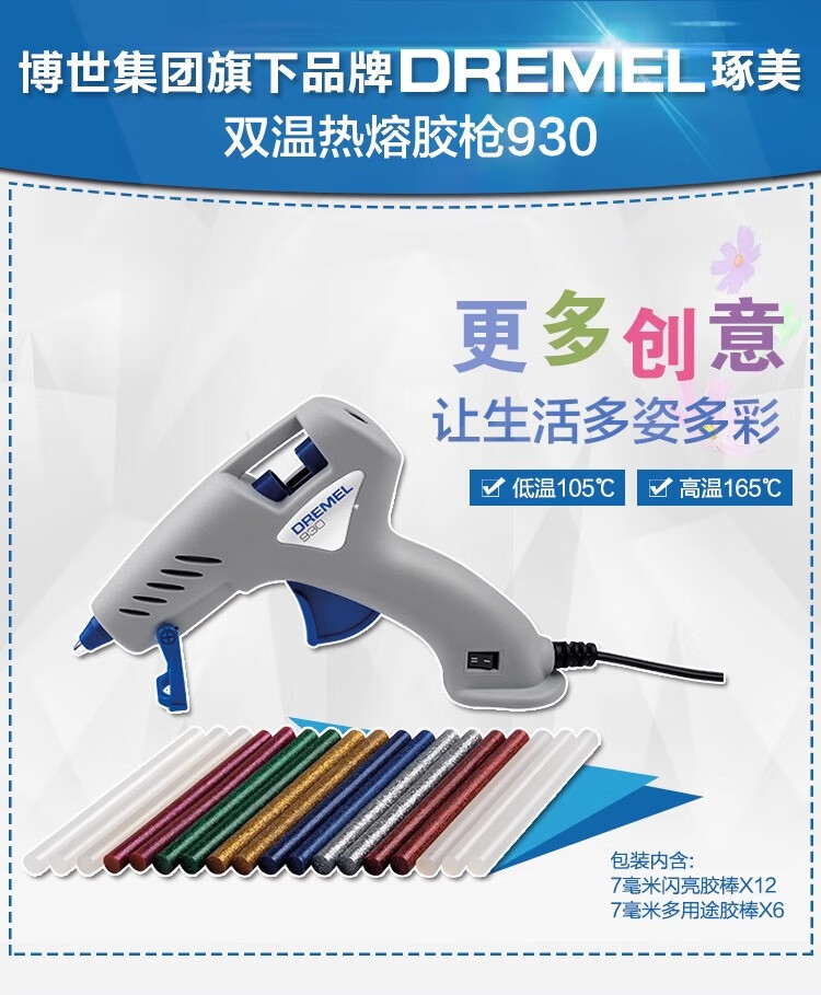DREMEL hot melt glue gun hot melt gun DIY temperature-adjustable hot glue gun glue stick high viscosity strong household children's handmade 940 11mm hot melt glue gun