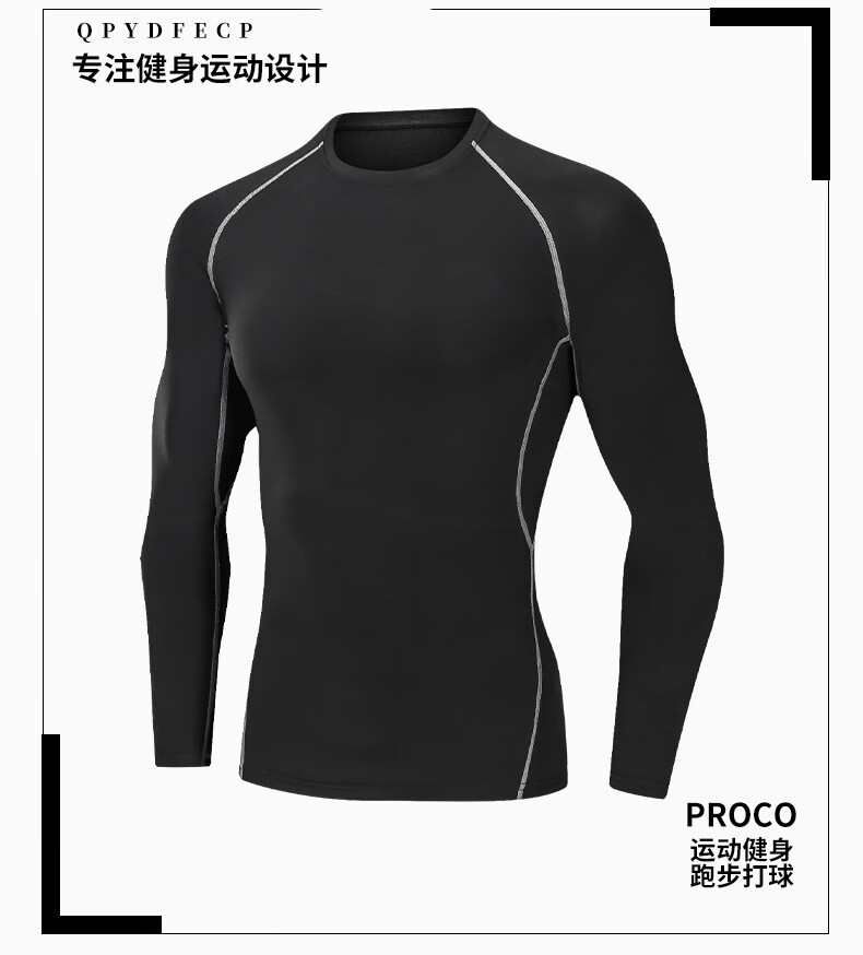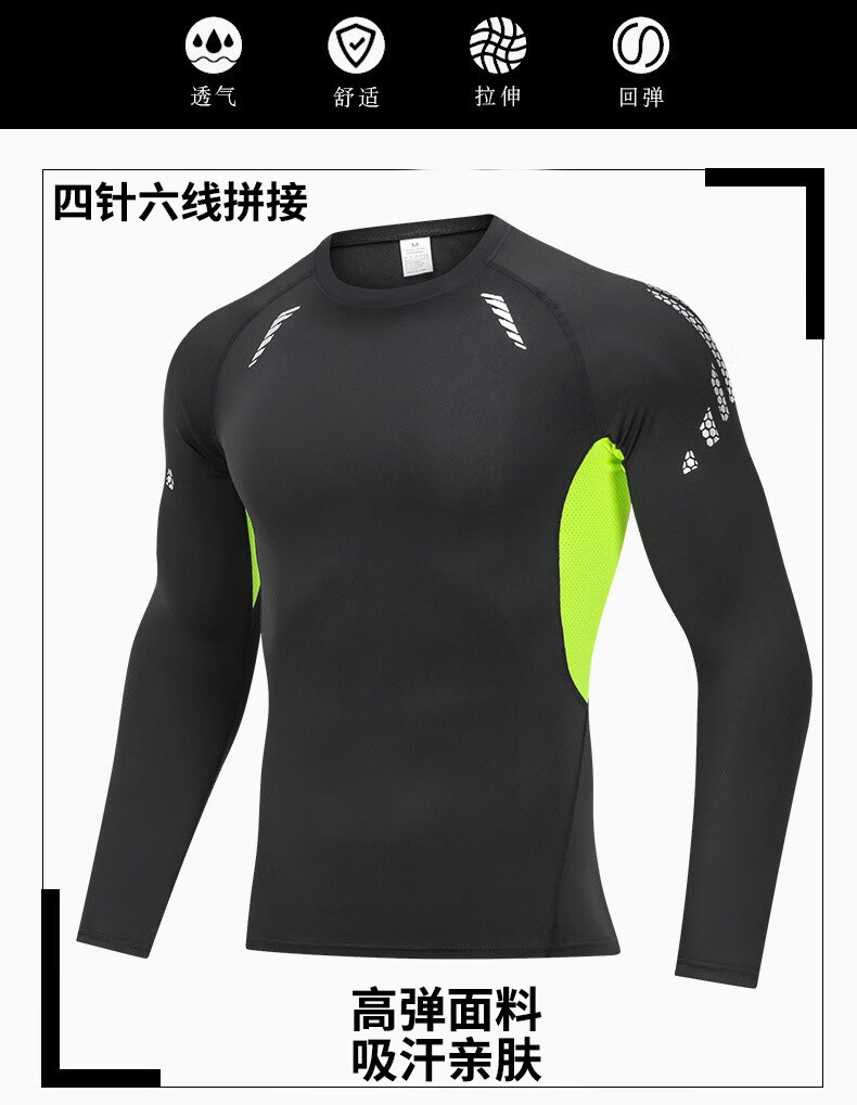 NIUKAILE running long-sleeved T-shirt men's spring and summer quick-drying breathable tight-fitting basketball sports training casual sports fitness top elite long-sleeved M