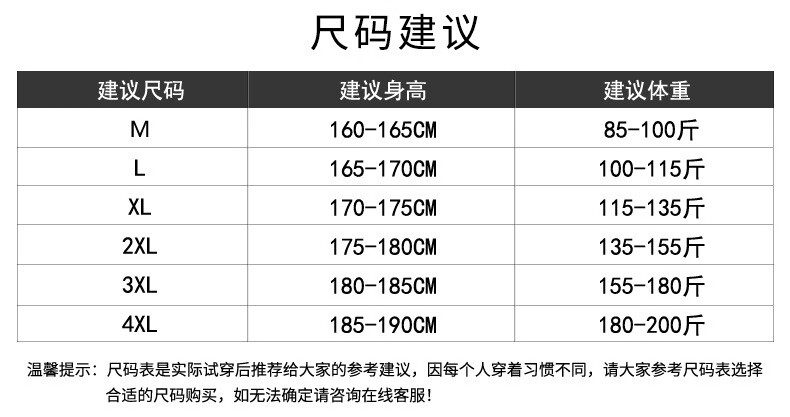 China (cm) 165 / 88-90 170 / 96-98 175 / 108-110 180 / 118-122 185 / 126-130