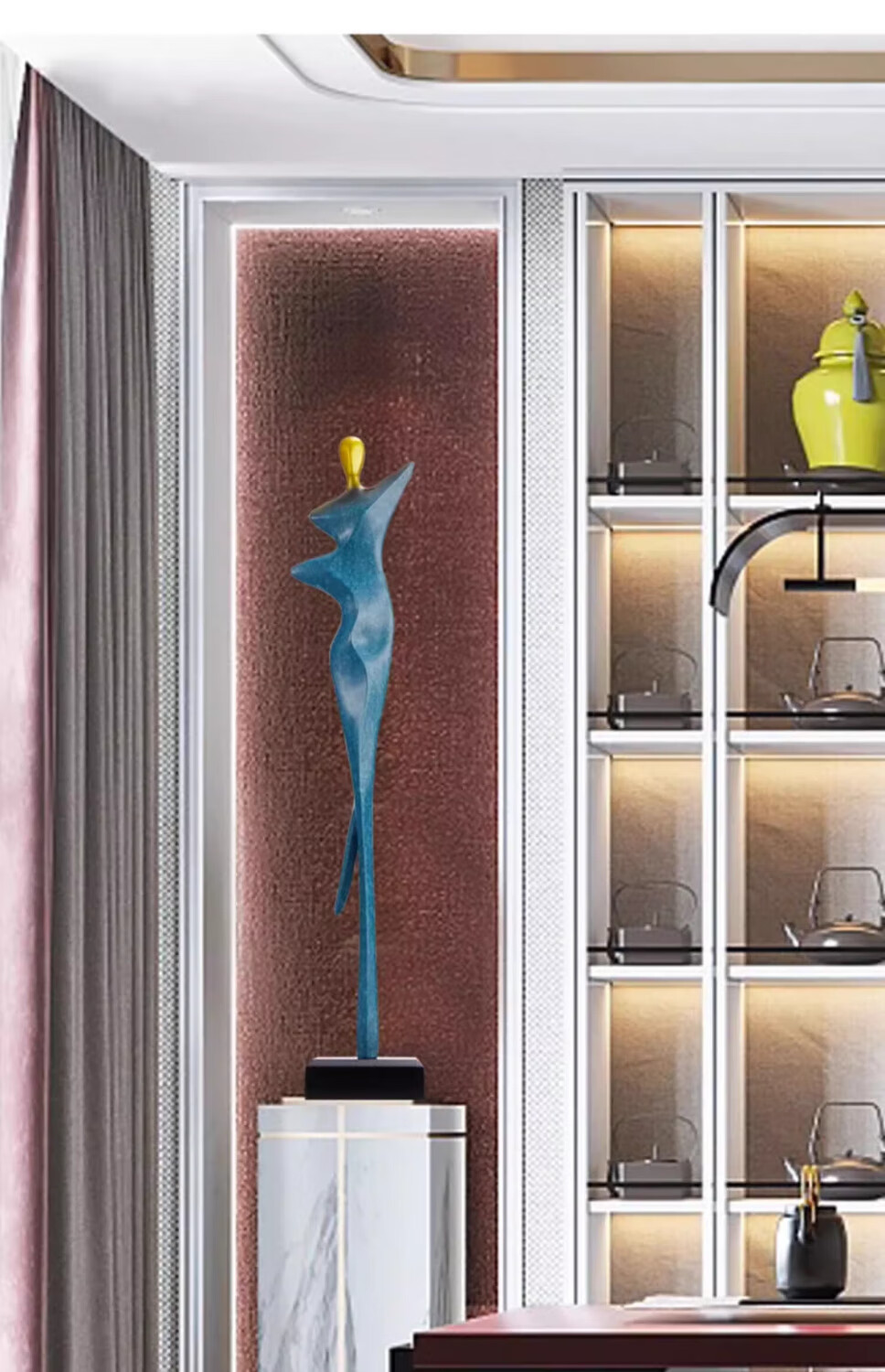 Bai Decoration Modern Simple Abstract Figure Sculpture Ornaments Entrance Alcove Corridor Model Room Living Room Art Decoration Slim Champagne Gold