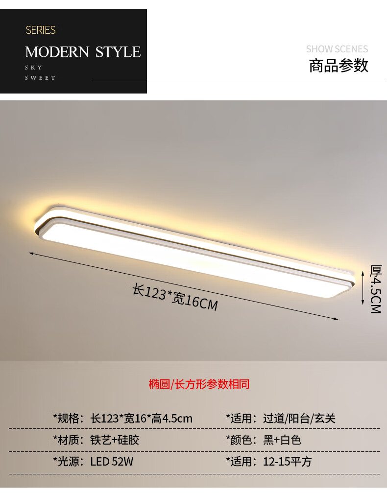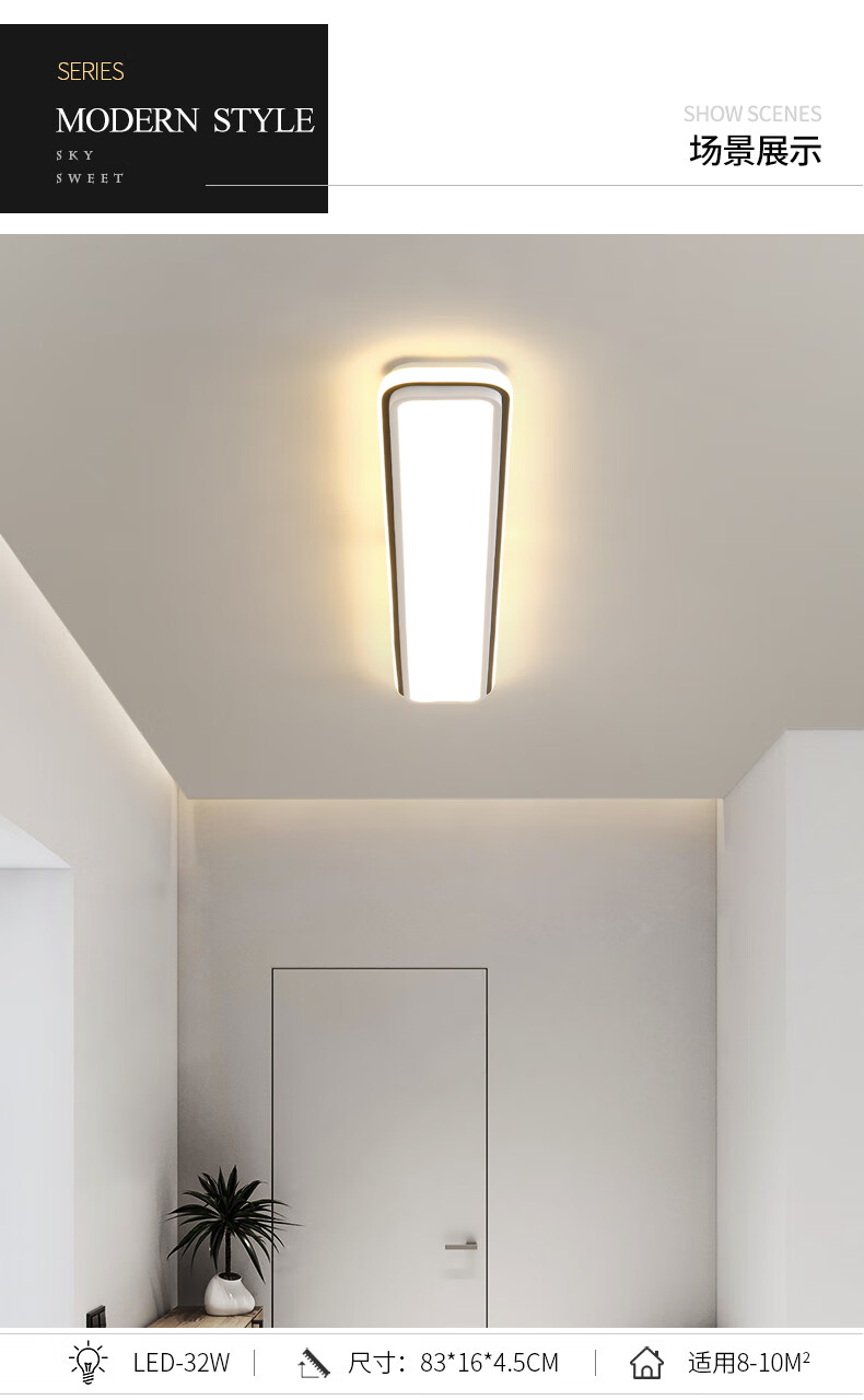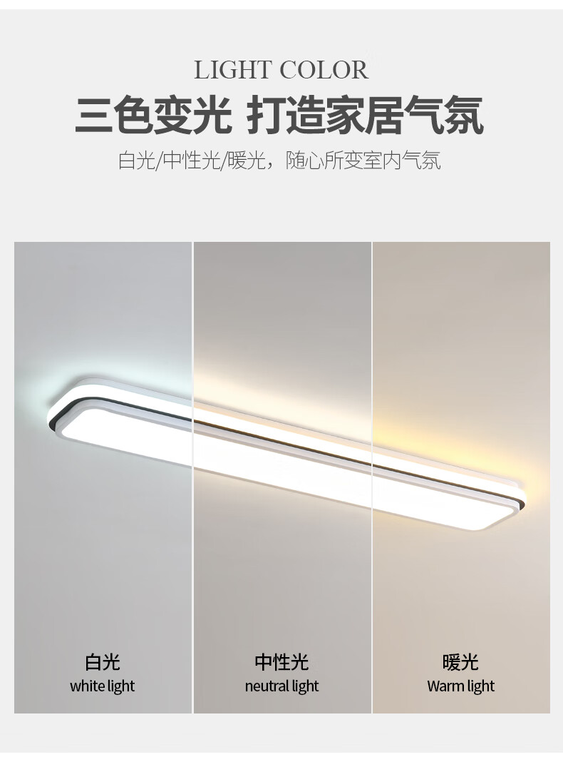 永智走廊吸顶灯小尺寸长条阳台玄关家用卧室衣帽间长方形过道灯佛中山 白款83*16*4.5CM-32W-智能款支持