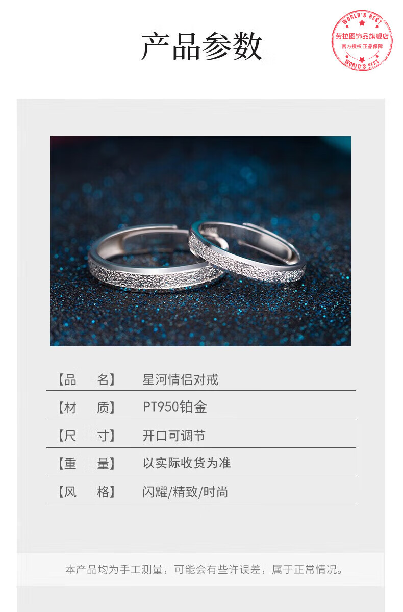 LAOLATU Platinum Ring Women's PT950 Platinum Couple Ring Men's and Women's Open Chinese Valentine's Day Gift for Wife pt950 Platinum Couple Ring Live Adjustable