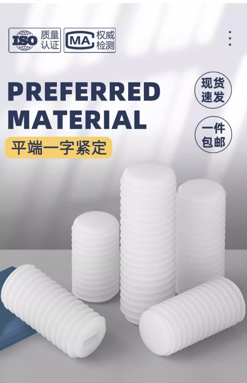 Fengji insulating nylon plastic one-word flat-end set screw without top wire machine meter screw M3M4M5M6M8M10M12 M3*15-100 pieces