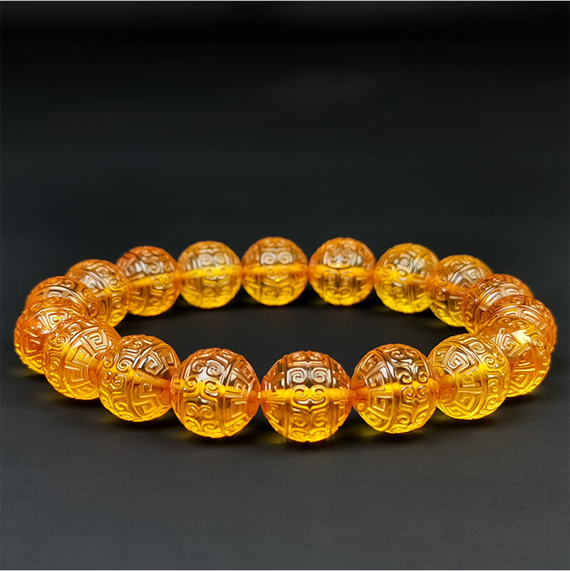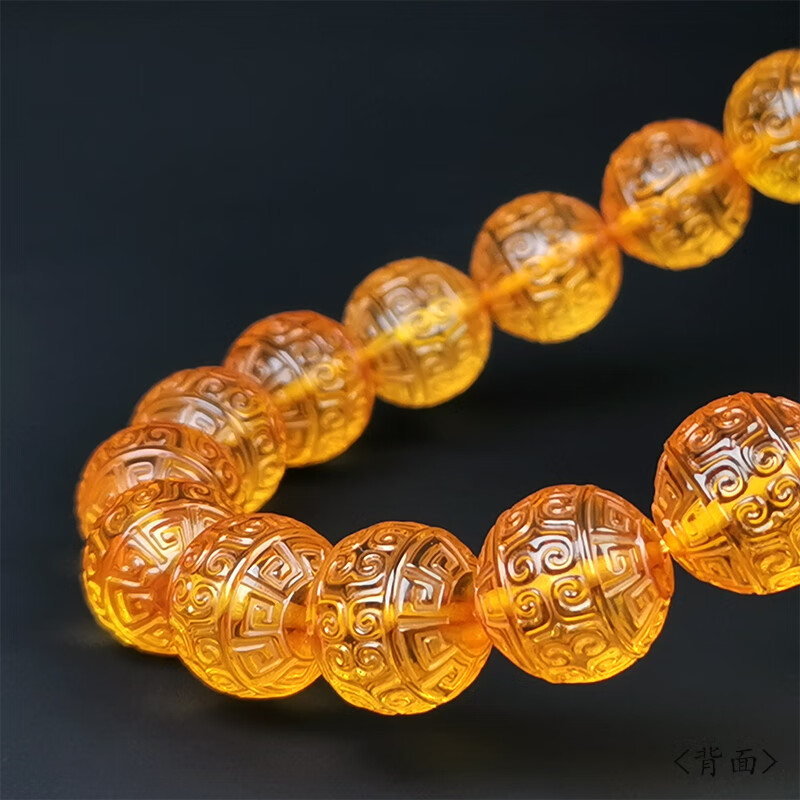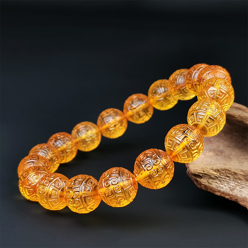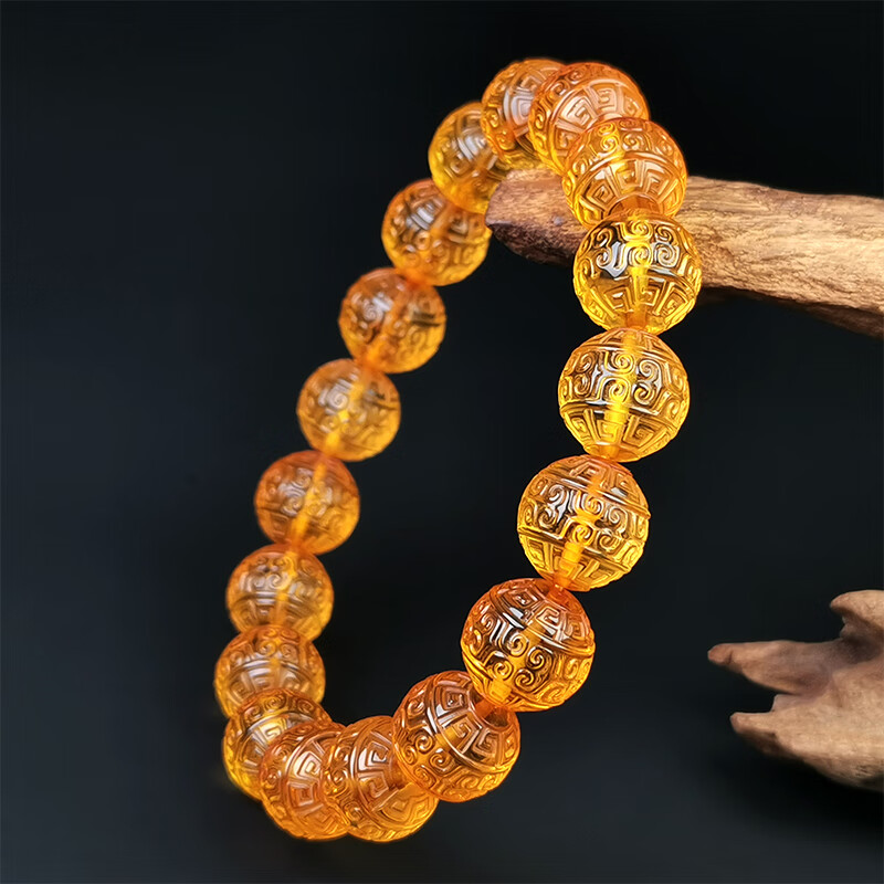 Hupai, one thing, one picture, one certificate, gold and amber bracelet, natural amber bracelet, female, engraved Buddhist beads, no cracks, bracelet, 12.02 grams, bead diameter 10.5 mm