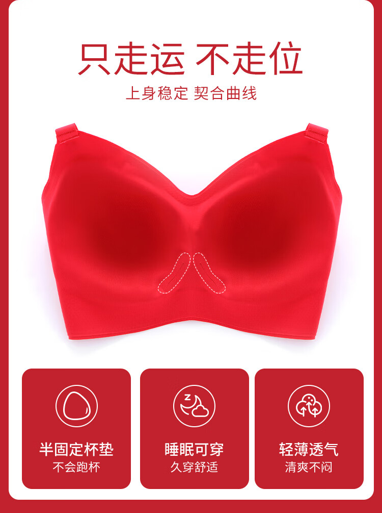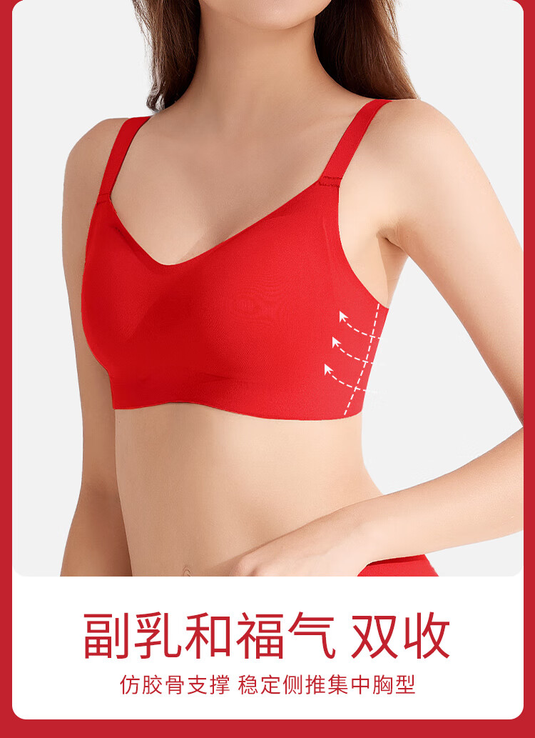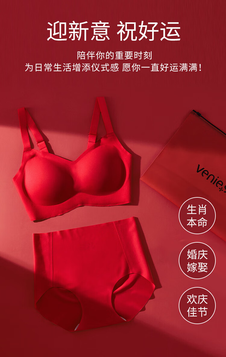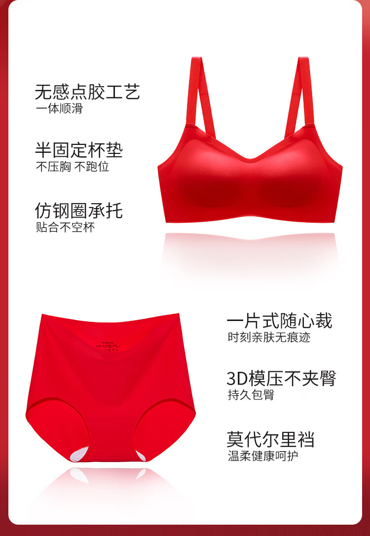Fenyi zodiac year red underwear set for women with big red and small breasts, push-up, thin, seamless underwear, bra, wedding gift, red (back hook), M 160/85