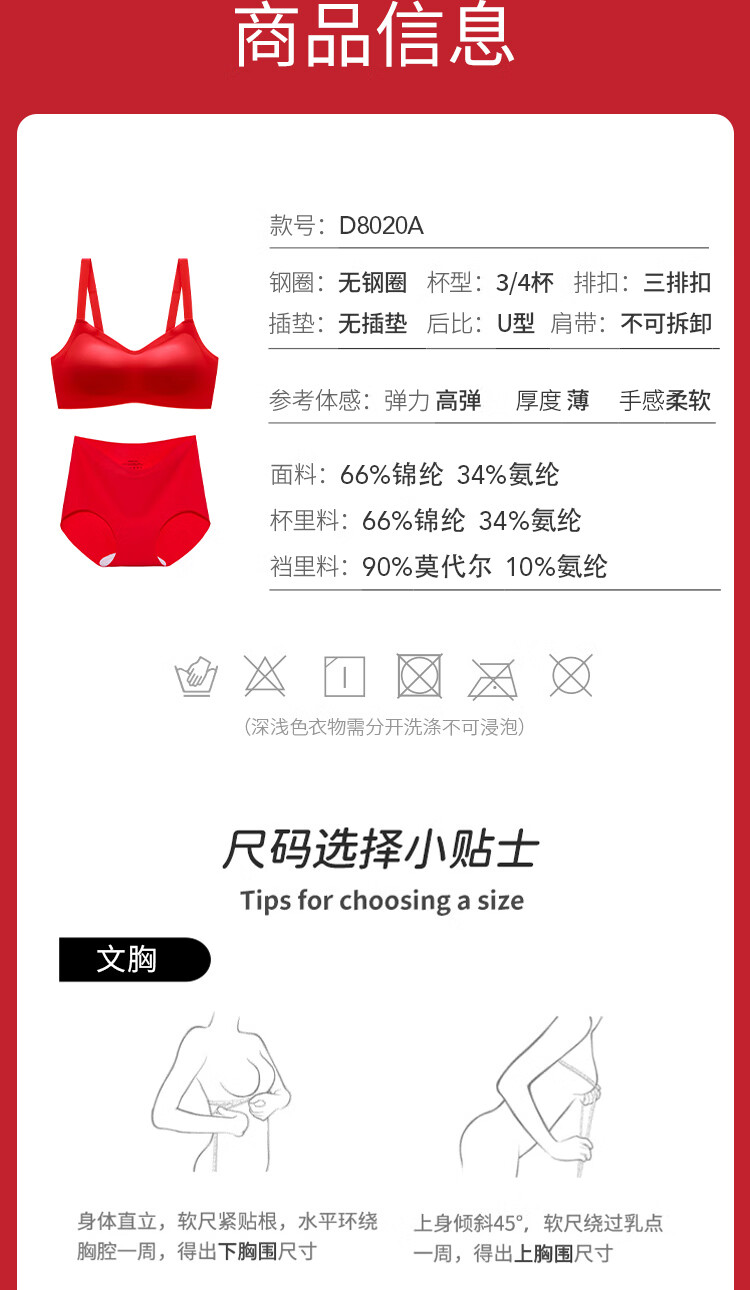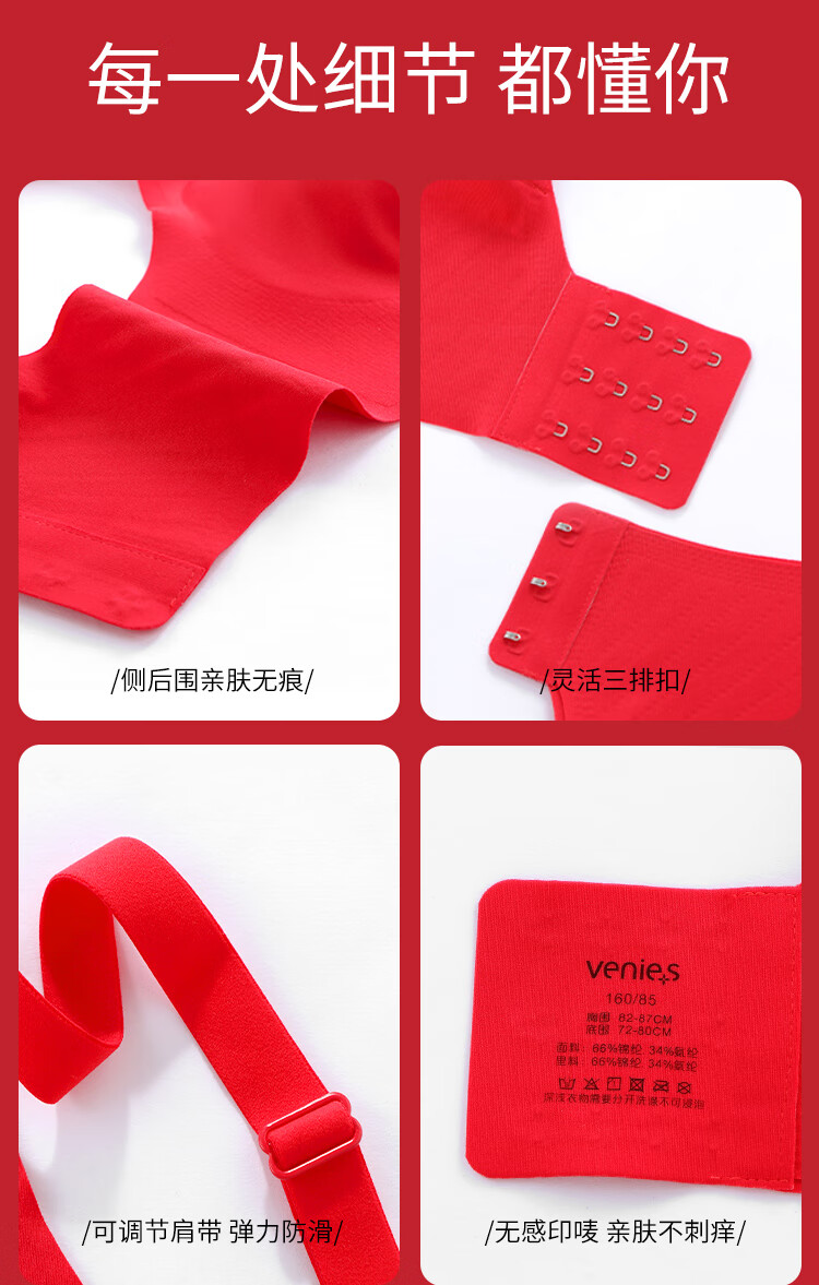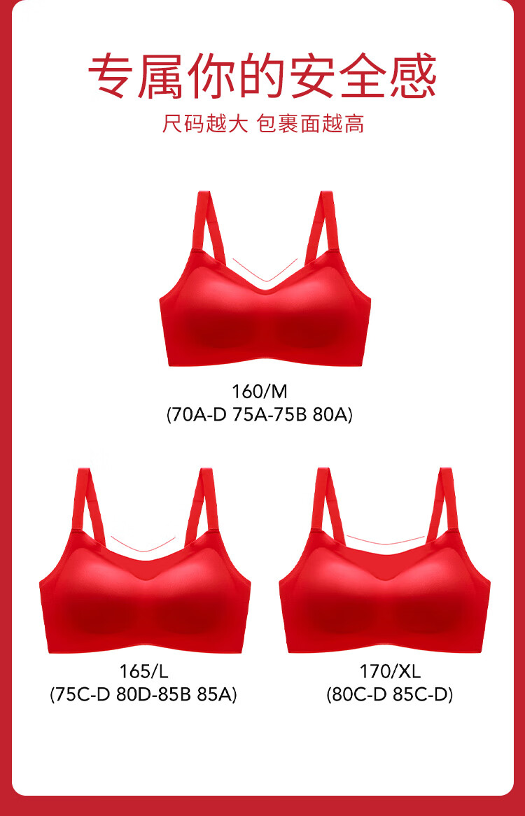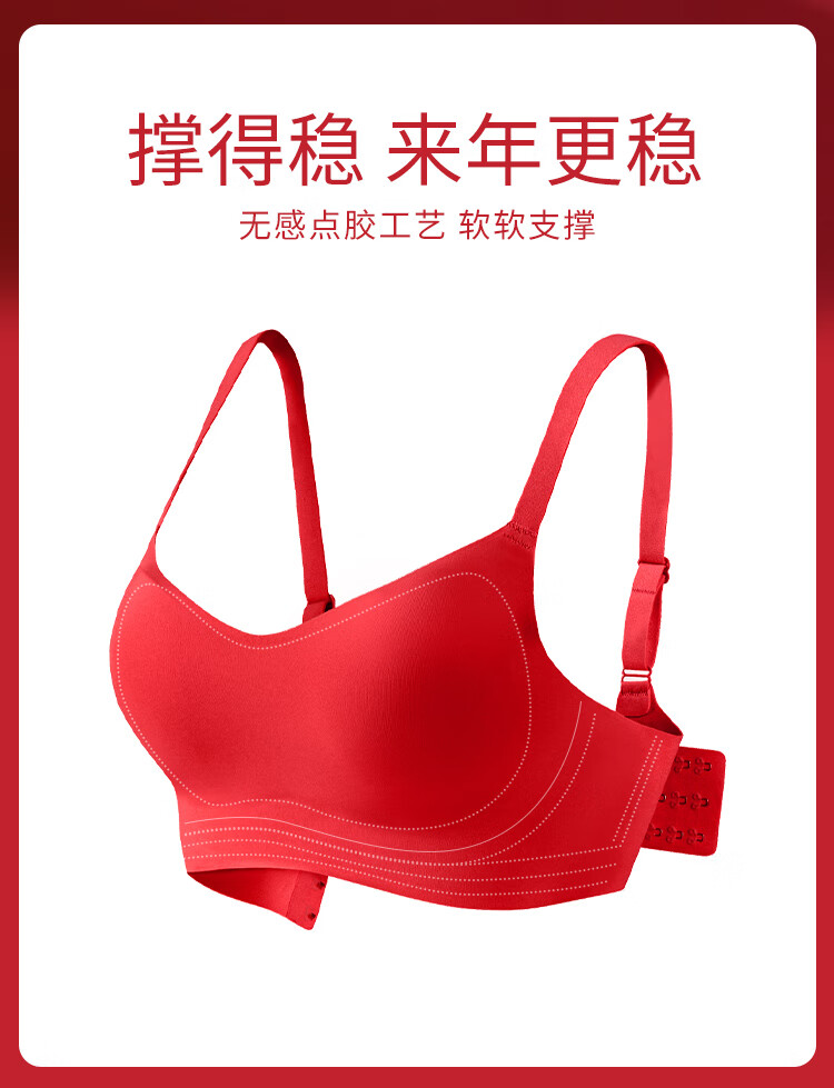Fenyi zodiac year red underwear set for women with big red and small breasts, push-up, thin, seamless underwear, bra, wedding gift, red (back hook), M 160/85