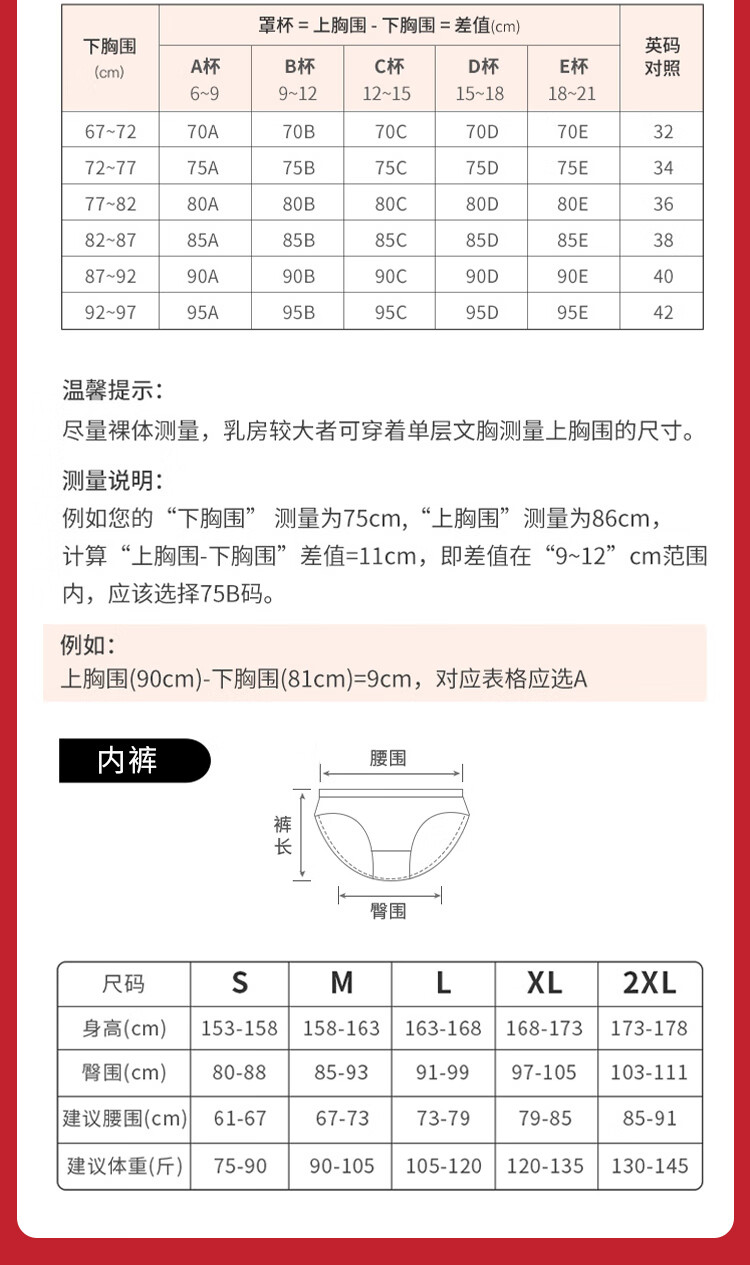China (cm) 160-165/84-86 165-170 / 88-90 167-172 / 92-96 168-173 / 98-102 170-176 / 106-110