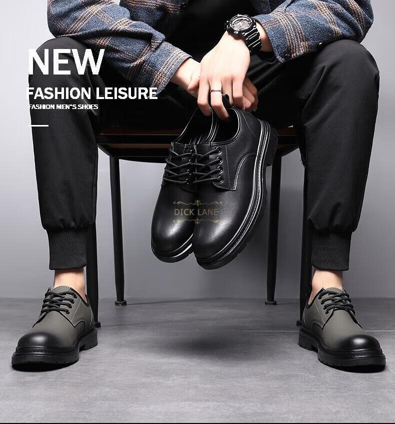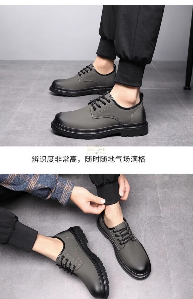 DICK LANE Dick Lane brand trendy leather shoes for men 2025 new business formal men's shoes fashionable comfortable casual derby shoes for men khaki 42