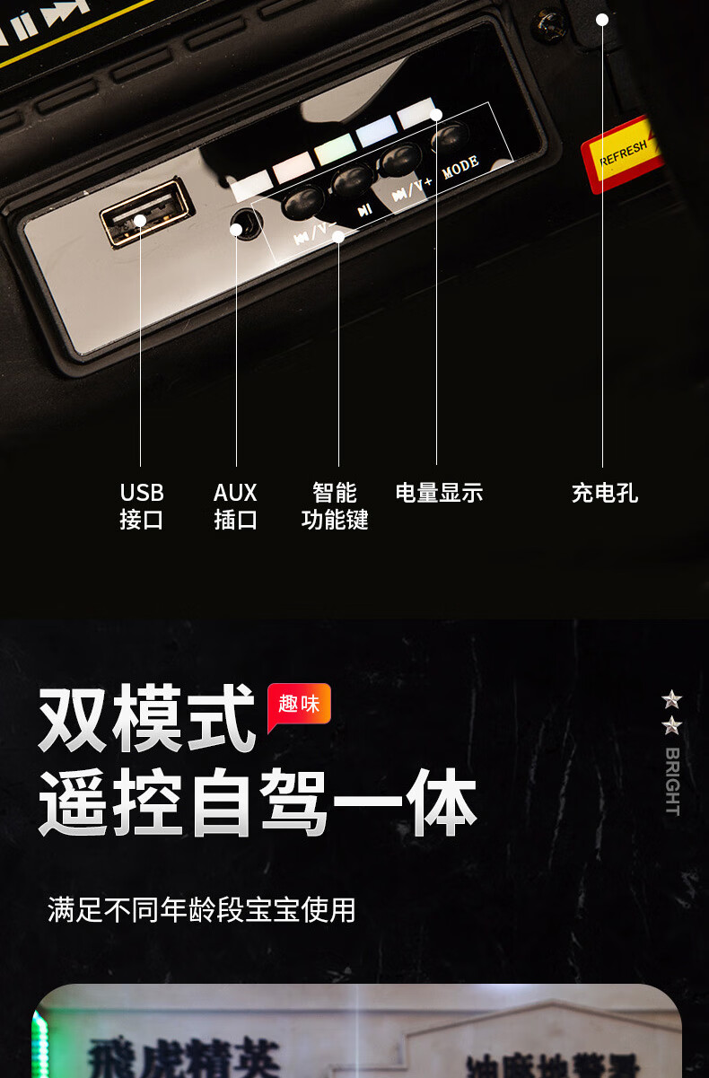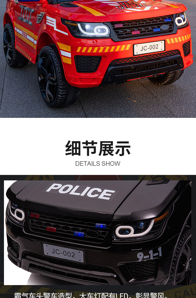 WORK BABY children's electric car four-wheel police car four-wheel drive car for men and women with remote control toy car that can sit in a baby stroller flagship version black four-wheel drive leather seat soft wheel electric drive