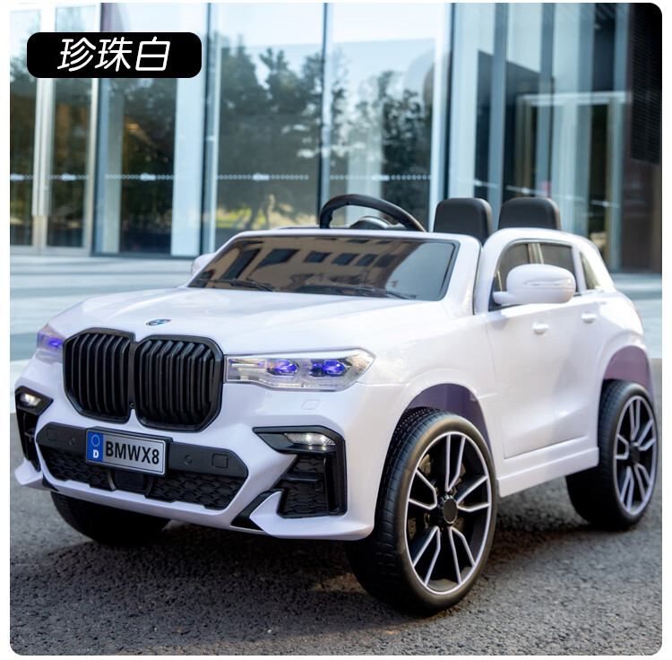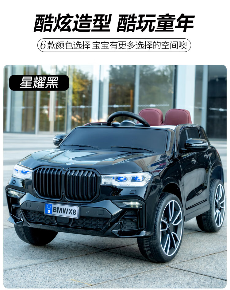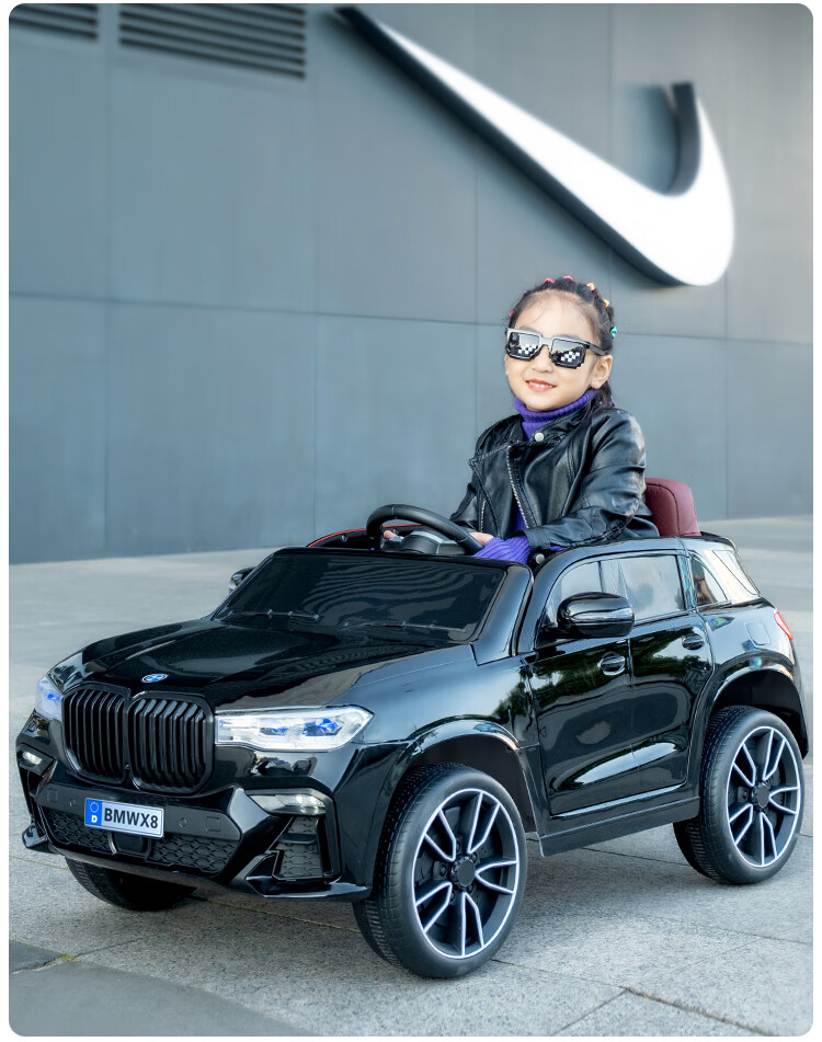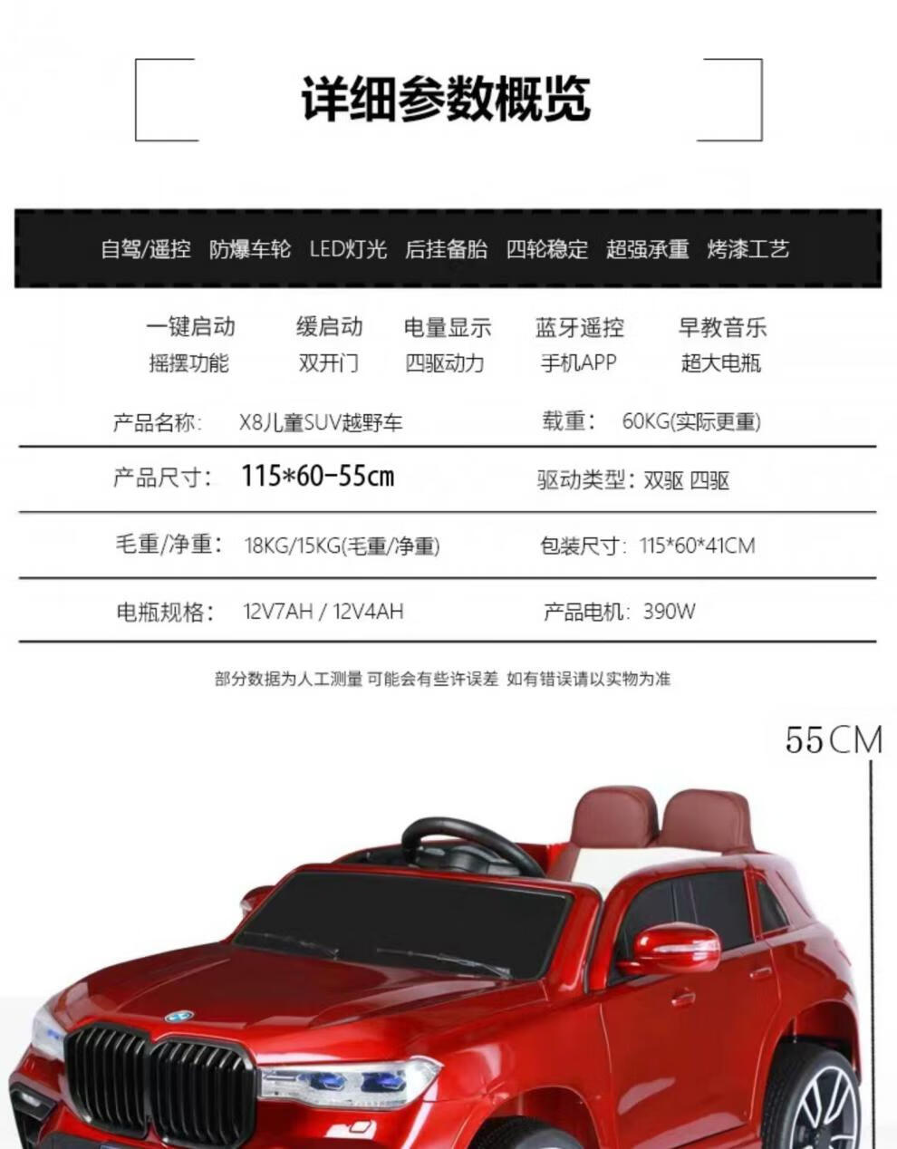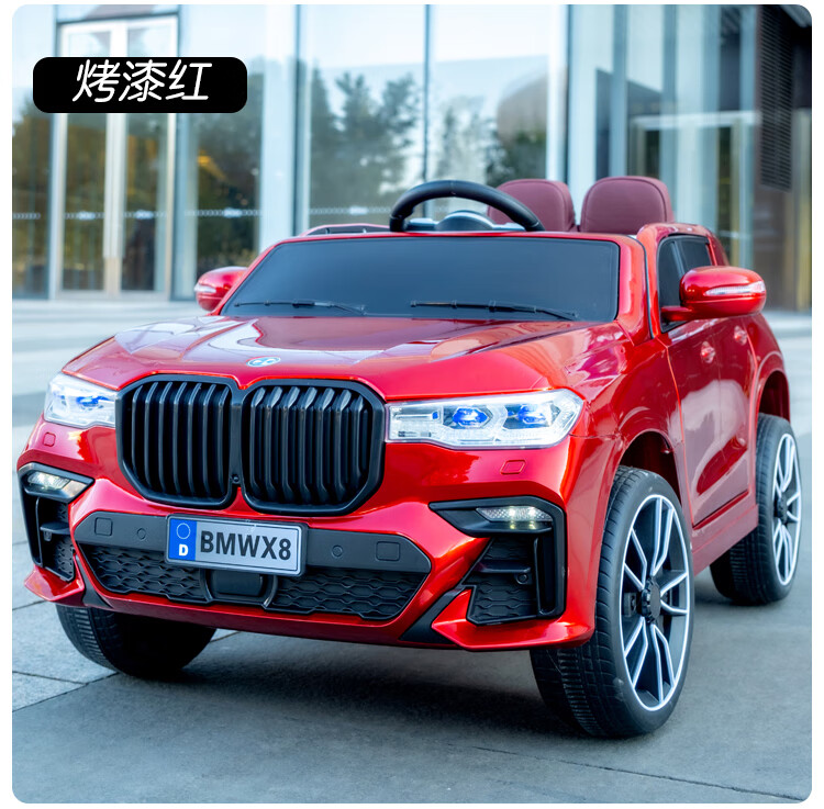 WORK BABY BMW's new children's electric car four-wheel drive can sit in an adult car, boy baby toy, child remote control off-road vehicle x8 painted red + dual drive + remote control + leather seat, electric drive