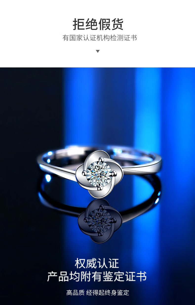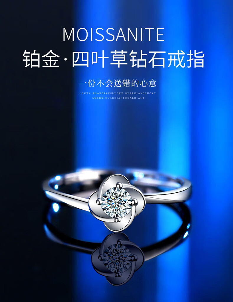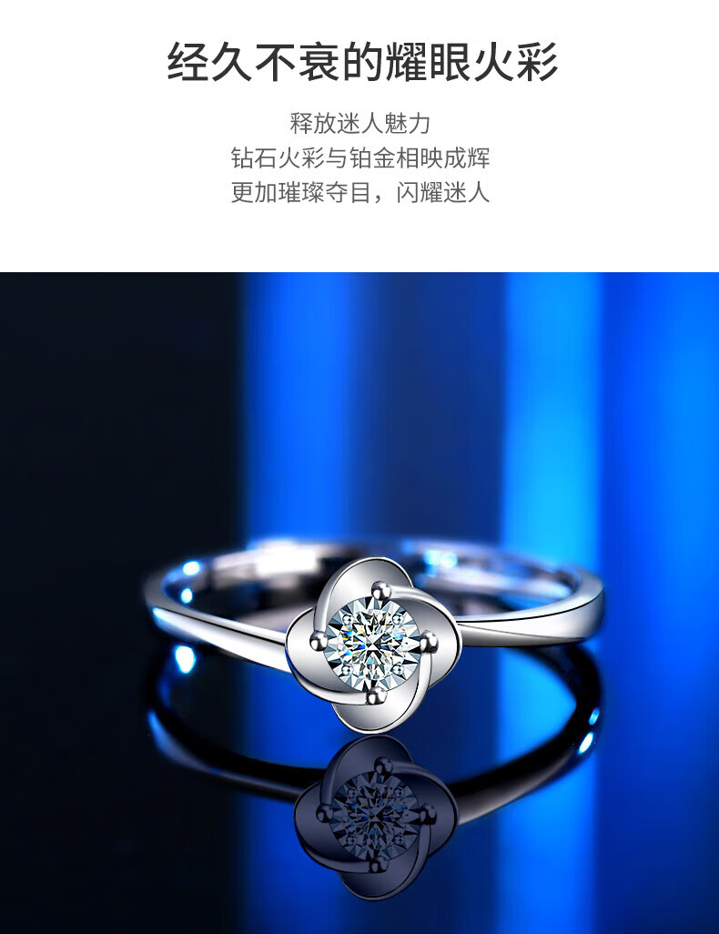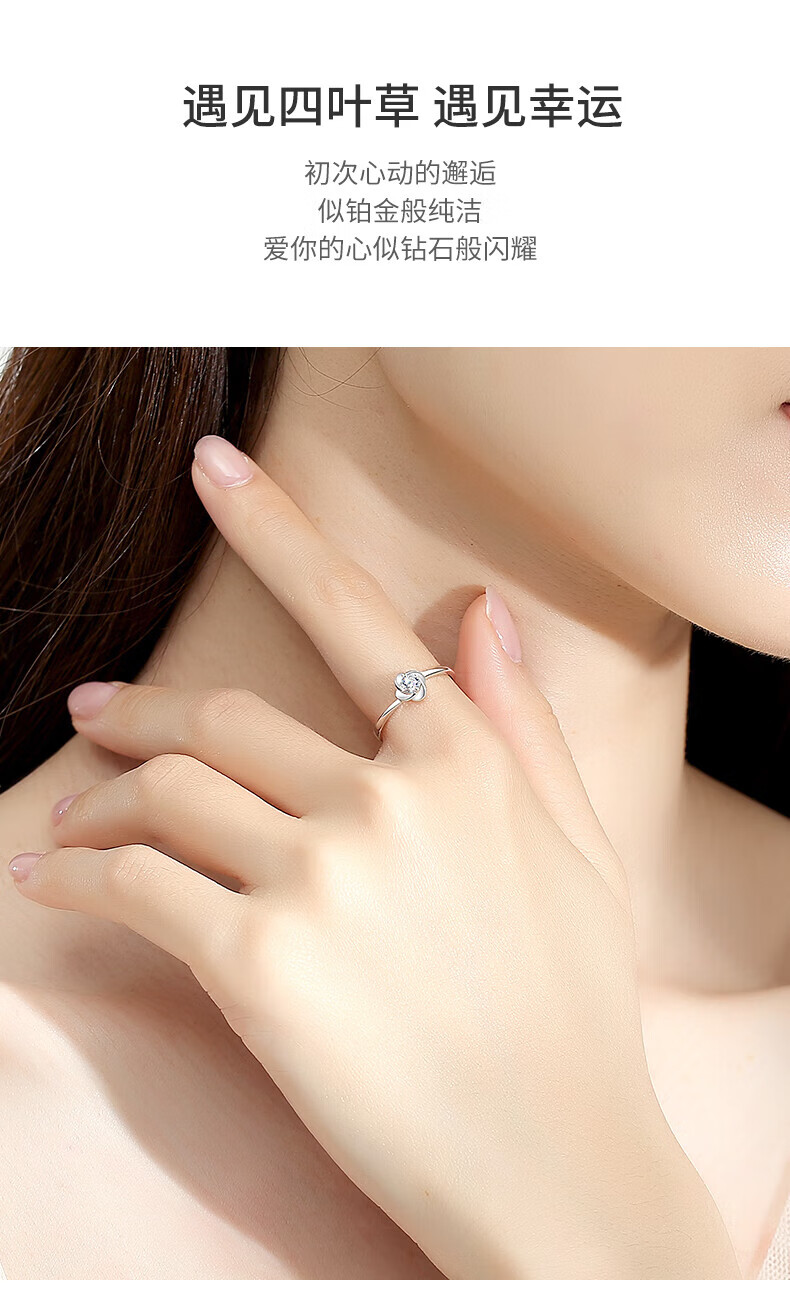 China Gold (CHINA GOLD) four-leaf clover platinum ring for women platinum diamond engagement diamond ring birthday gift for girlfriend and wife wedding anniversary real platinum four-leaf clover ring-3 points of real diamonds