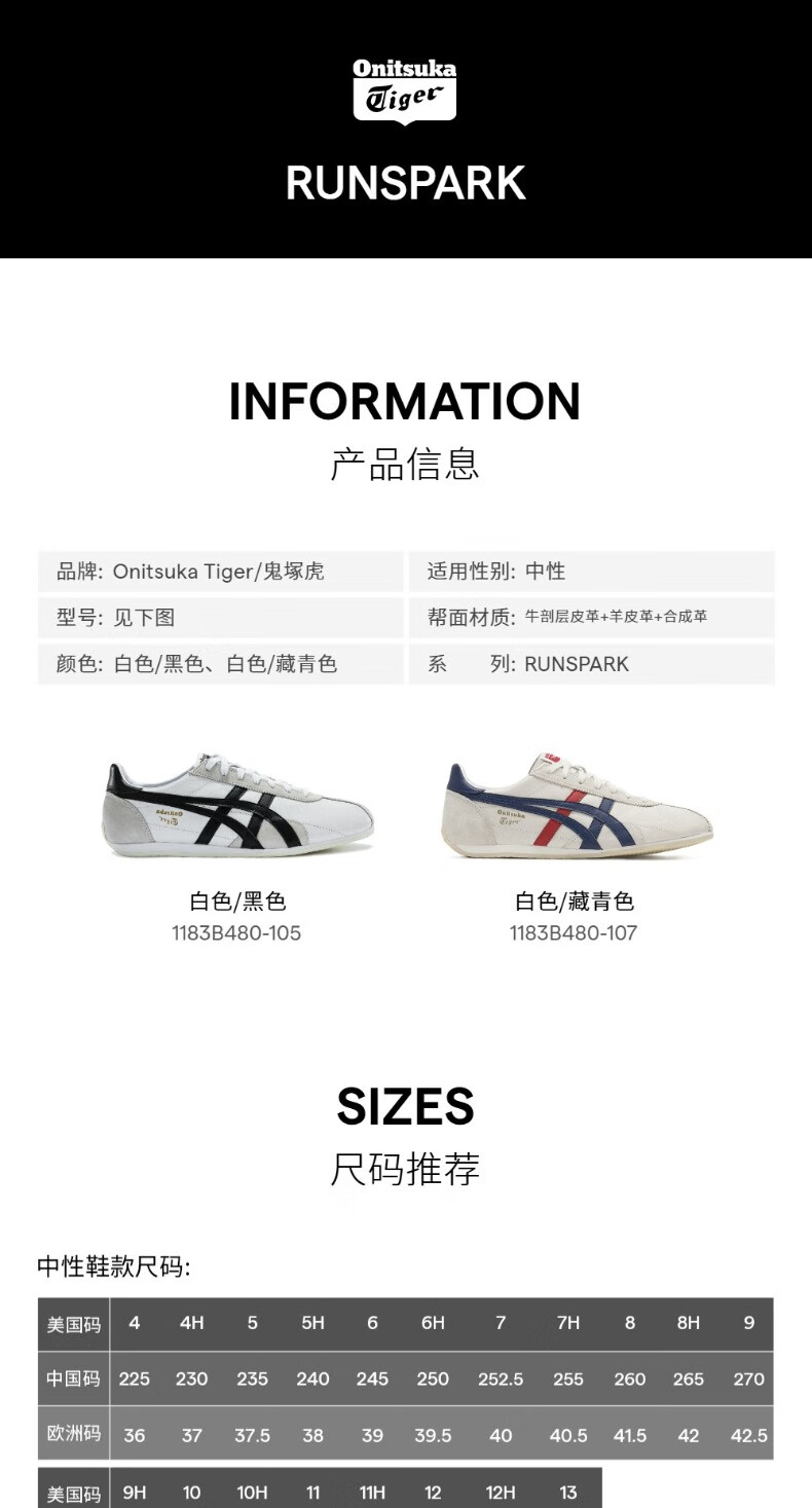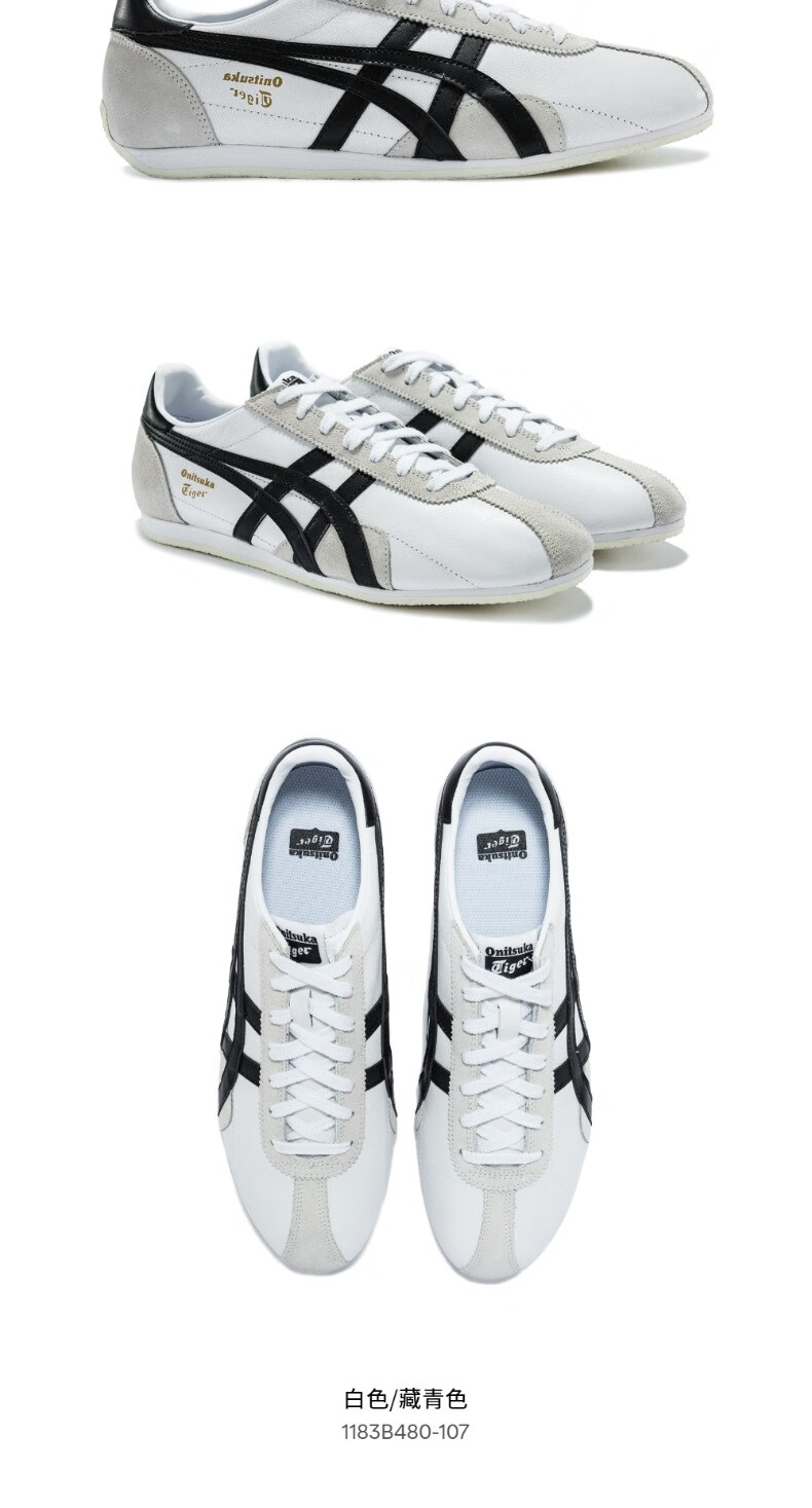 Onitsuka Tiger Men's Shoes Jogging Shoes Breathable Lightweight Men's and Women's Sports Casual Shoes RUNSPARK White/Navy Blue (1183B480-107) 42.5