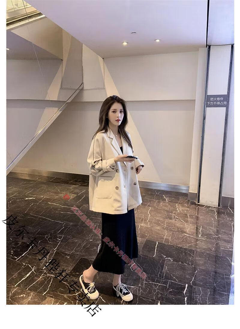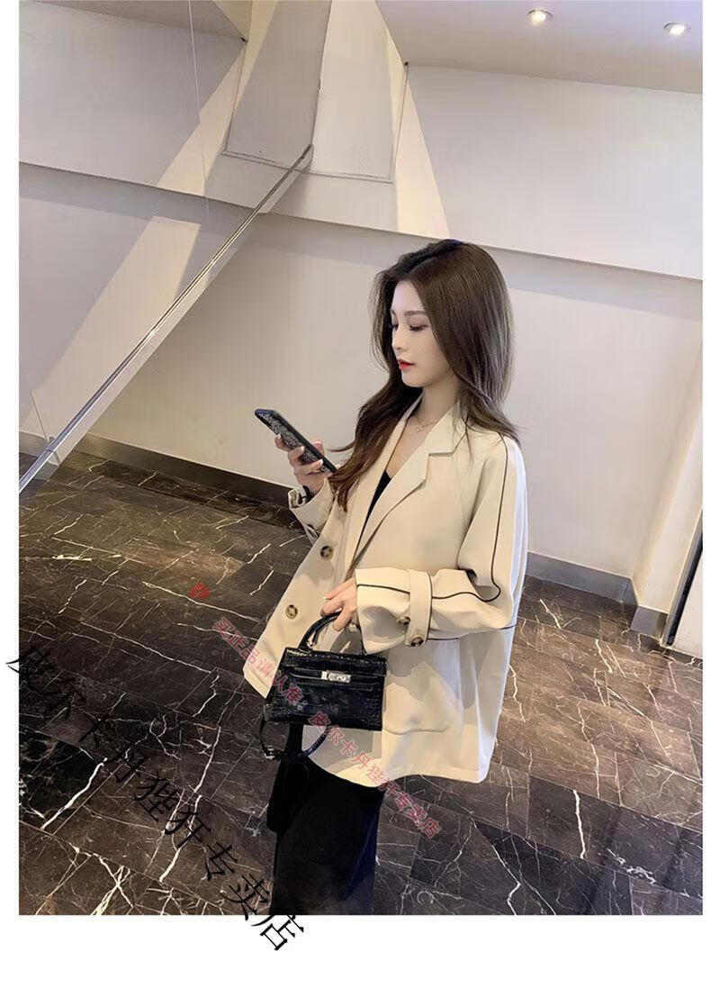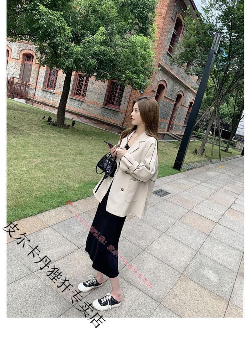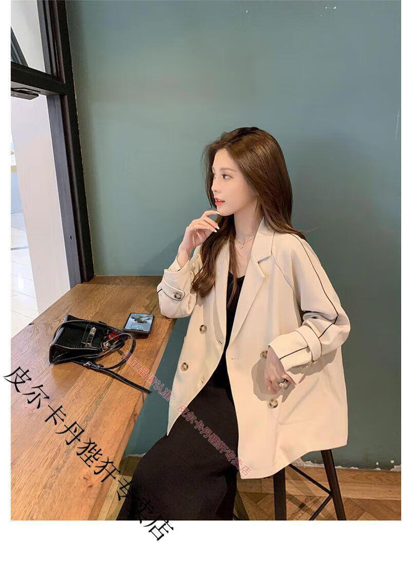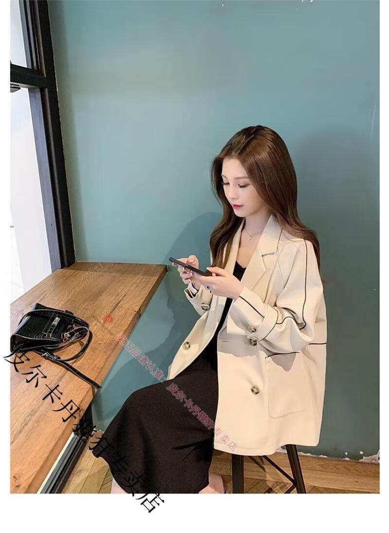 Pierre Cardin blazer women's loose 2025 spring and autumn new Korean style design contrasting topstitch casual suit top apricot XL